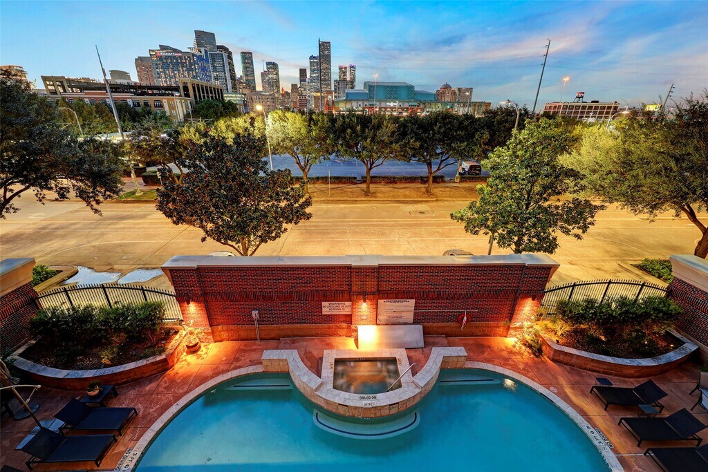 Well appointed 1 bedroom/1 bath mid-rise,EaDo condo with Northwest views of Downtown Houston. Computer/office nook in the primary suite. Assigned covered parking - 2 spots included (ground floor). Community swimming poo and putting greenl. Walking distance to Shell Energy Stadium,Daikin Park,Theaters,popular restaurants and bars and shops. Metro Rail across the street takes you to central Downtown,Theater District,Medical Center,Museum District and NRG Stadium. Monthly rent includes water,trash and sewer. MLS# 52101998
