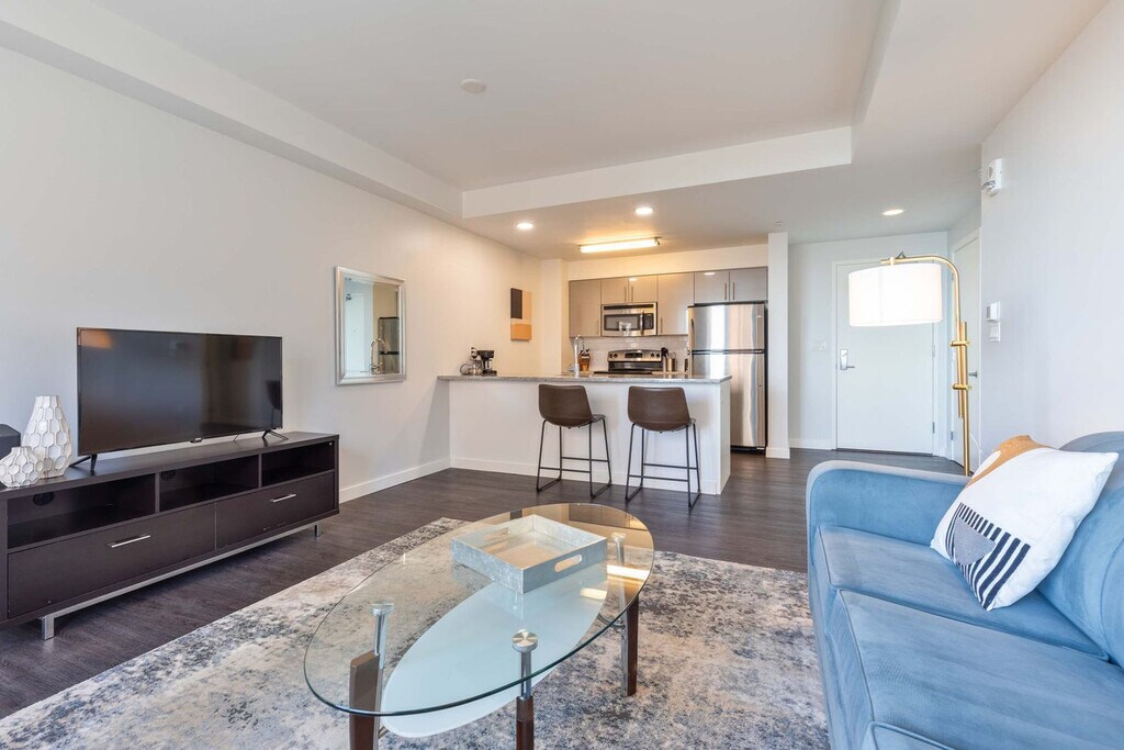 The advertised rate of $9,111/month is the lowest available price, based on a 30 day(s) stay with a move-in date of August 4, 2026. Rates vary depending on the duration of stay, season, and other parameters. For exact pricing and additional pricing components, please visit our website and enter your desired move-in and move-out dates. The rate is applicable when billed upfront; it can be higher if billed in multiple payments. Feel at home in this modern Seaport apartment at Waterside Place by Windsor, offering stunning harbor views. This LEED Gold Certified apartment features floor-to-ceiling windows, a modern kitchen with stainless steel appliances, in-unit laundry, wide-plank wood flooring, and spacious layouts with premium finishes. Residents enjoy 24/7 fitness with an outdoor yoga deck, stylish lounges, and outdoor spaces including a bocce court, grilling stations, and a community garden. Parking is not included, but garage parking may be arranged for a fee. Pets are welcome with a fee. The Boston Seaport District is known for its modern skyline, trendy restaurants, and lively nightlife. Stroll the Harborwalk, explore the Institute of Contemporary Art, and enjoy rooftop bars with sweeping harbor views. With shopping, entertainment, and fresh seafood all around, the Seaport is a vibrant destination where Boston’s city energy meets the charm of the sea. Public transportation options include the Silver Line (SL1, SL2, SL3), South Station (Red Line, Commuter Rail, Amtrak), MBTA bus routes, MBTA ferry service, Bluebikes bike share, and Logan Airport via Silver Line and Seaport shuttles. Check-in instructions will be provided via email 7 days and 24 hours before check-in. Quiet hours are between 10 PM and 6 AM. Identity and background verification are required for entry. The trusted partner utilizes Authenticate for identity verification to ensure a safe and trustworthy experience. If a booking does not pass the identity verification process, the partner reserves the right to cancel the reservation. Registration Number: C [SI]