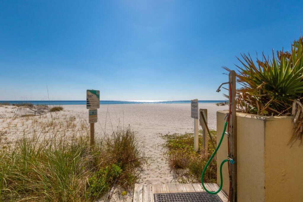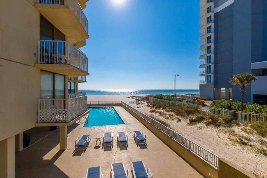 Located directly on the beachfront at Gulf Shores, this cozy and welcoming 2-bedroom condo, Whaler 1A, is designed for a comfortable and enjoyable stay. Situated on the ground floor, it offers convenient access to both the beach and the complex’s amenities, making it perfect for guests looking to relax and unwind. Inside, the condo features an open-concept living and dining area with plenty of natural light. The fully equipped kitchen includes modern appliances and a breakfast bar, providing everything needed for home-cooked meals. Whaler 1A provides access to amenities like a large swimming pool, BBQ area, and direct access to the sandy shoreline. The parking fee is included in the total amount, with parking space available for a maximum of 2 cars. Additionally, it’s located close to Gulf Shores' top dining, shopping, and entertainment spots, making it a great choice for a relaxing coastal getaway. Local attractions include Gulf State Park, Alabama Gulf Coast Zoo, Gulf Shores Public Beach, Waterville USA, The Hangout, Bon Secour National Wildlife Refuge, Fort Morgan Historic Site, Adventure Island, and the Gulf Shores Museum. A State Identification Card or Driver's License copy will be requested upon booking. The traveler must be at least 22 years of age to make a reservation. For March 1st to May 1st, the minimum age requirement for check-in is 25 years old. There is a security camera/recording device outside for safety and protection. Beach towels are not provided. For same-day late check-ins, host approval is required before booking. No smoking is allowed in the unit or on the balcony, and any violation will incur a $250 fine plus cleaning costs. Quiet hours are observed from 10 pm to 8 am, with violators charged a $200 fine. The condominium association has a strict no-pets policy, which applies to emotional support animals. Only ADA-compliant service dogs are allowed according to Federal Law. No parties or events are allowed, with violators charged a $500 fine. [SI]