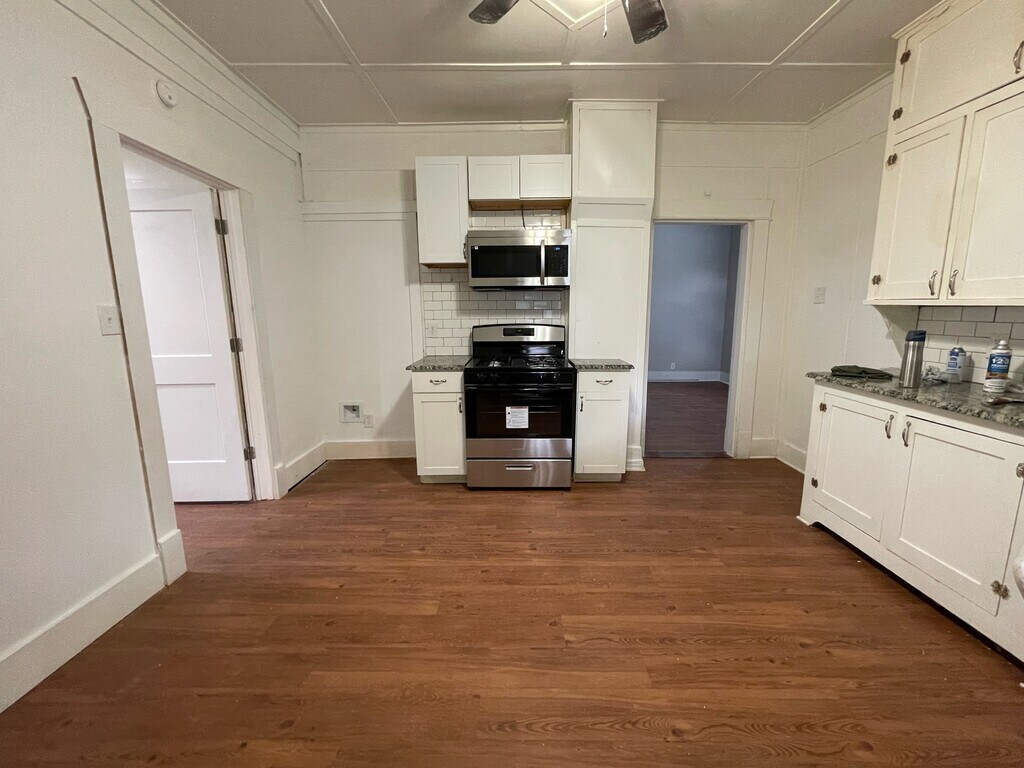 This beautiful home is available for showings while the finishing touches are being put on the house. The house is much larger than most 2 bedroom homes. It has 2 living areas and a huge laundry room/pantry with lots of shelving and extra room for storage. The living rooms and bedrooms are also large in size and have 10' ceilings giving the home a roomy feel. Central air and heat with gas furnace and extra insulation in the attic. The kitchen has granite counter tops with a tile back splash and stainless steel appliances. Incredible subway tile tub surround with 2 large niches. Refinished hardwood and laminate floors flow through out the house and 2' blinds cover most of the windows. No carpet. Bright recessed lighting and ceiling fans are in most rooms. The house has 2 carports and a fenced backyard with a nice covered patio. There is a 2 car driveway in the back. Pets are allowed with a $250 refundable deposit per pet. Dogs over 25 lbs are not allowed. Long term renters are preferred. Credit will be checked, but rental history and income are the most important factors. Full selection criteria can be found online at