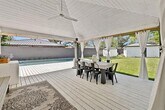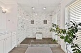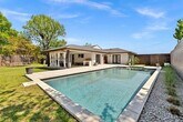Located in Wynnewood North, this beautiful one story home features 2,748 SF of living space designed for comfort and luxury. The circle driveway and front yard welcome you to a spacious living room with vaulted ceilings, large picture windows, wood accents, and bamboo flooring throughout. The kitchen boasts an oversized island, quartz countertops, and ample counter space for meal preparation and gathering. The primary bedroom is the perfect retreat, with a split layout from the secondary bedrooms, showcasing views of the backyard and pool. It includes a generous walk-in closet with an island, along with an en-suite bath featuring elegant finishes, including double marble vanities and an oversized, marble-tiled walk-in shower with dual showerheads. Step outside into a private backyard, featuring a large saltwater pool with a heated spa. Enjoy a large portico with a 900 SF wood deck and expansive grassy areas. A detached garage adds functionality with a home office, storage closet, and a half bath. The home comes fully equipped with a refrigerator, washer, and dryer. Located just minutes from Downtown Dallas, Bishop Arts, shopping, and entertainment, this home is a must see!