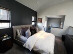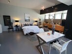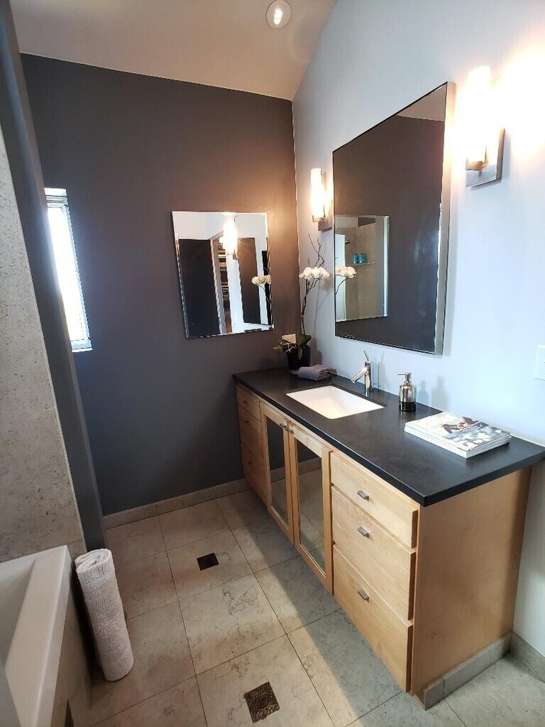 Cool Modern Loft Gated entry Either Furnished or Unfurnished Amazing open vaulted ceilings Large windows with eastern exposure gives gentle light to the overall feel Black polished concrete floors add drama in the living kitchen area Custom solid walnut staircase with metal railing Unique contemporary style artwork - Recessed lighting Well appointed kitchen with large central island area - Stainless appliances - Commercial stainless fridge - Gas cook top Downstairs bathroom is designed around an antique custom door - Plaster wall finish - Glass tiled steam shower - Floating custom vanity Relax in the Master bedroom on soft plush carpet and a spacious king bed - Walk in closet with his her built in dresser - Plenty of storage shelves and hanging space Master bath includes Bain Ultra jetted tub with limestone shower Garage tastefully converted to a private downstairs bedroom with concrete floors and forced air heating or can still be used as attached 2 car garage Central Zen Bamboo courtyard Hip Oakland Area Close to Grocery Shopping Close to downtown Restaurants Freeway Access to SF and South Bay Walking Distance to Fruitvale Bart