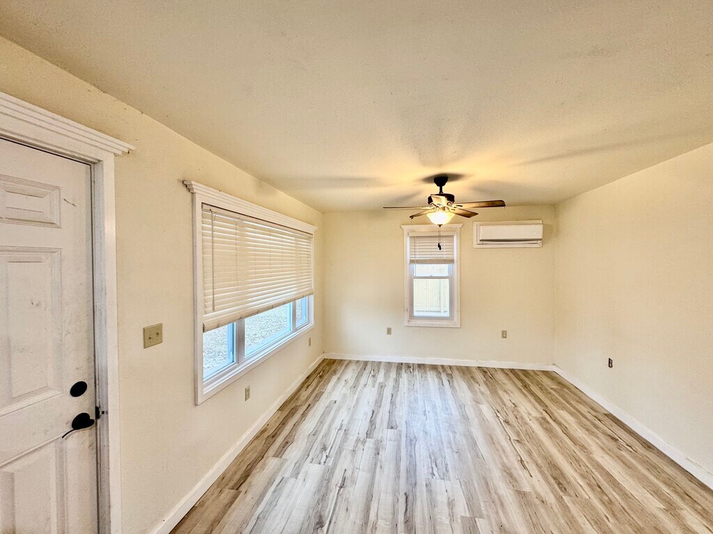 We remodeled this house last year. It was stripped down to the studs with new floor joists and new walls and a new roof and new everything inside of it. We also put in a new kitchen, new bathroom, new family room, new windows, new luxury vinyl floors, and the two bedrooms and closets were all redone as well. It has a new water heater and it also has two mini split heaters and ac units. We also redid the cement for the driveway and have a nice 1 car attached garage which has a nice walk in closet inside of it. We have an 8' x 10' sheds to use as well and we put in a new wooden fence so the backyard is fenced in. No smoking will be allowed and a pet would require prior approval and would add $50 per month for each pet approved. . I would require an application for anyone 18 or over and you can fill that out on Zillow. (The pictures were done during the remodel and I will be getting new ones eventually but the house is completed)
