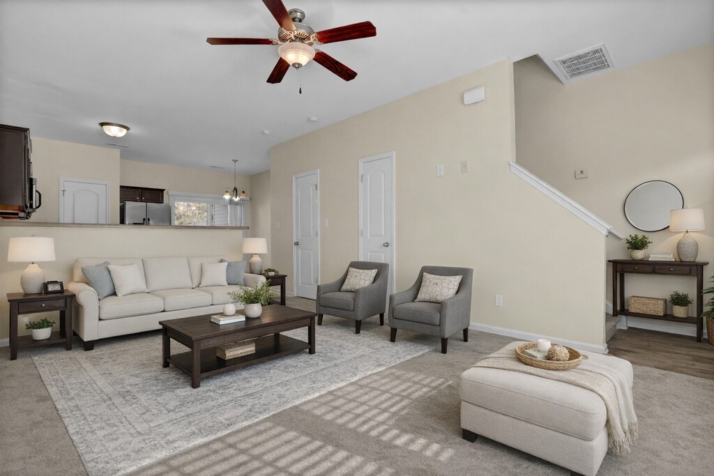 Welcome to your perfect coastal retreat! This beautifully maintained 2-bedroom, 2.5-bath townhome offers comfort, convenience, and style just a short drive from the area’s stunning beaches. Inside, enjoy a bright interior with fresh neutral paint and brand-new carpet throughout. The open-concept main level features a spacious living area flowing into the dining space and kitchen, plus a convenient half bath. Upstairs, both generously sized bedrooms include private en-suite bathrooms for added privacy. Located near shopping, dining, and recreation, this move-in-ready townhome is available for long-term rent with flexible 6–12 month lease options. Schedule your showing today!