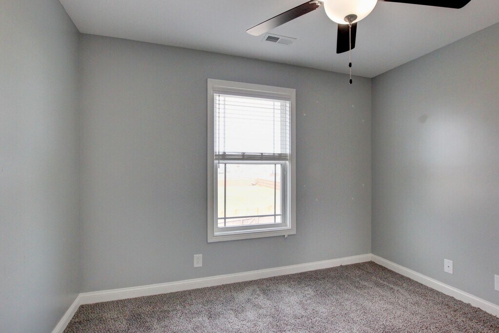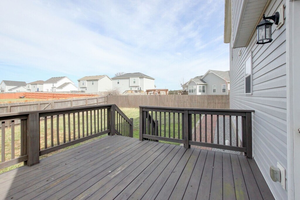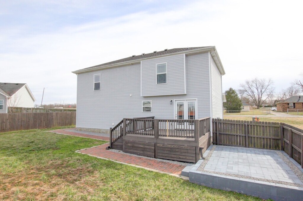 This 4-bedroom home features an open-concept living and dining area, perfect for entertaining. The primary suite offers trey ceilings, his and hers closets, and a private bath with double vanities. The extra-large second bedroom includes custom cabinets and desks which can be used for crafts, games, and more. Enjoy the large deck with storage underneath, a custom walkway, and a fully fenced backyard! The inviting front porch is a charming spot to relax, whether you're enjoying a quiet morning or unwinding after a long day. Only 1 mile from 101st Parkway, this home offers quick access to I-24, the military base, shopping, and dining. Perfectly located and no HOA!