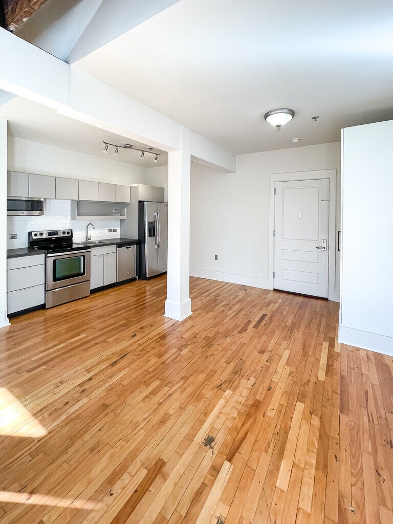 597 sq ft, oversized windows, original hardwoods, and included city garage parking — offered for rent for the first time! Bright, sun-filled end-unit condo in the historic Daylight Building, just one block from Market Square, with walking access to downtown shops, restaurants, and popular destinations. Features include: • Original hardwood floors, exposed brick, and wooden beams • Full wall of oversized windows filling the space with natural light • Spacious full bathroom, in-unit washer and dryer, and all appliances • Secure building entry and elevator access Parking & utilities: Water, sewer, and HOA fees are included. One rare non-reserved city garage parking pass is included. Tenant is responsible for electricity and internet. Additional requirements & rules: • Renters insurance required for the duration of the lease • 12-month lease required • No pets | No smoking | No subleasing | Short-term rentals (Airbnb, VRBO, etc.) prohibited by HOA This well-maintained end unit offers added privacy, a quiet downtown retreat, and a layout that lives larger than its square footage. Owner-managed and perfect for long-term, low-maintenance downtown living. Rent: $1,850/month | 12-month lease required Available: January 28, 2026