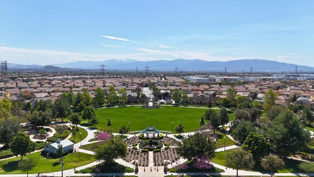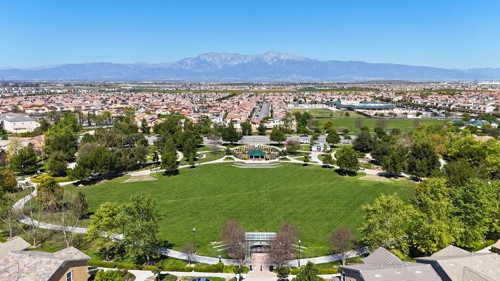 Welcome to park-front living in the highly coveted Park Place community of Ontario Ranch. This home’s premium location offers unobstructed views of Celebration Park South. Enjoy morning walks, open green space, and no neighbors directly in front. This detached single-family home features a bright and open floor plan with luxury vinyl plank flooring throughout. The inviting living room includes an eye-catching fireplace and built-in speakers, perfect for relaxing or entertaining. The spacious dining area flows seamlessly into the kitchen, which offers ample cabinet and counter space, stainless steel appliances, and a walk-in pantry. Upstairs, you’ll find a versatile loft, ideal for a home office, media room, or additional living space. The primary suite features a large walk-in closet and a well-appointed bathroom with dual vanities, a soaking tub, and a separate shower. Two secondary bedrooms share a bathroom with dual sinks, making it easier to get ready in the morning. A dedicated laundry room includes a washer and dryer for added convenience. Step outside to a private, low-maintenance side yard with full hardscaping and a covered patio, perfect for outdoor dining and easy maintenance. Another great feature of this home is the two-car attached garage with overhead storage racks. Residents of Park Place enjoy access to resort-style amenities, including a clubhouse, fitness center, pool, spa, BBQ areas, sports courts, and multiple parks. Park View Elementary School is conveniently located within walking distance as well. Ideally located near the 60 and 15 freeways, with close proximity to Sprouts, Costco, Target, and Home Depot. Exciting new retail and dining options are on the way, including Better Buzz Coffee, Whole Foods Market, and more. Making this a prime opportunity to live in one of Ontario Ranch’s most desirable communities. All appliances, landscaping maintenance, and HOA dues are included.