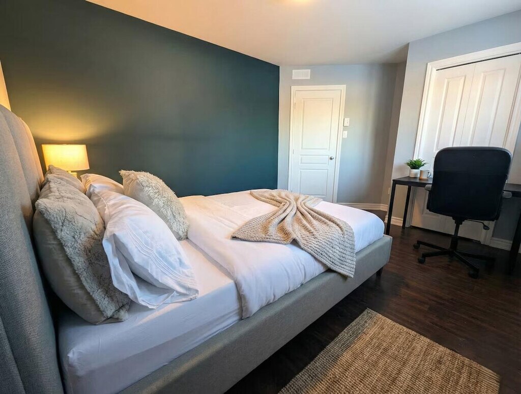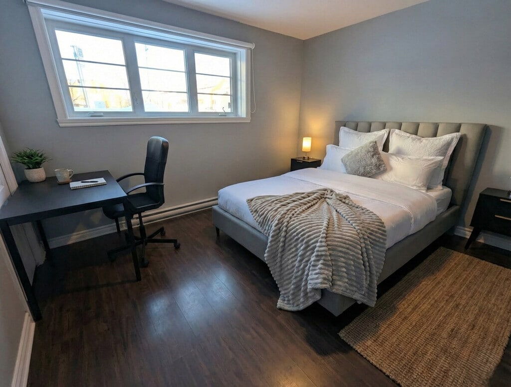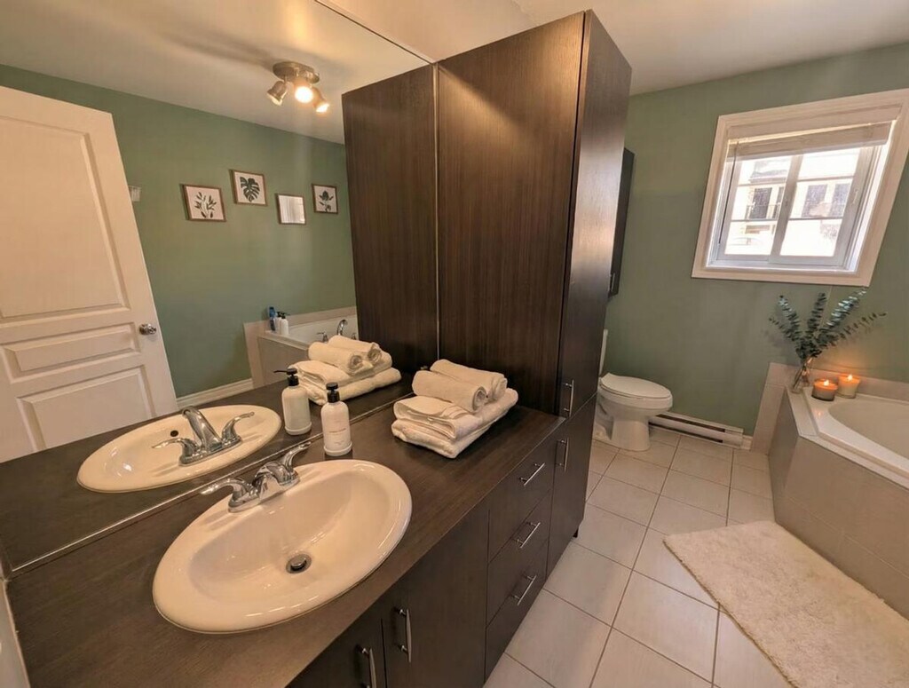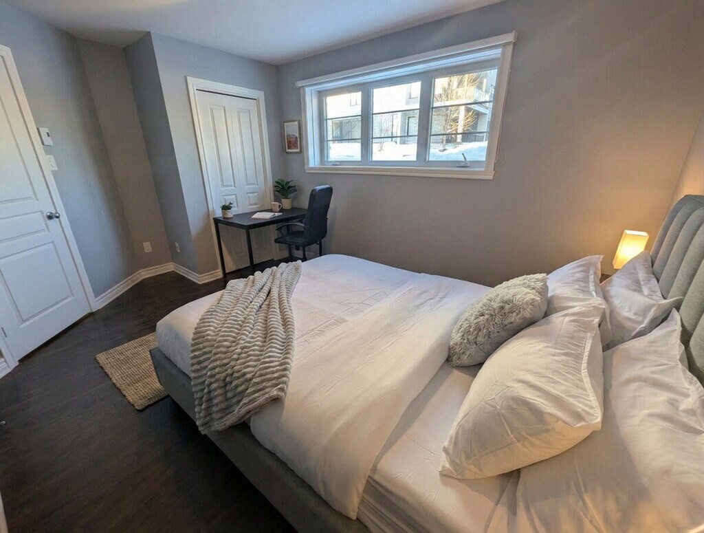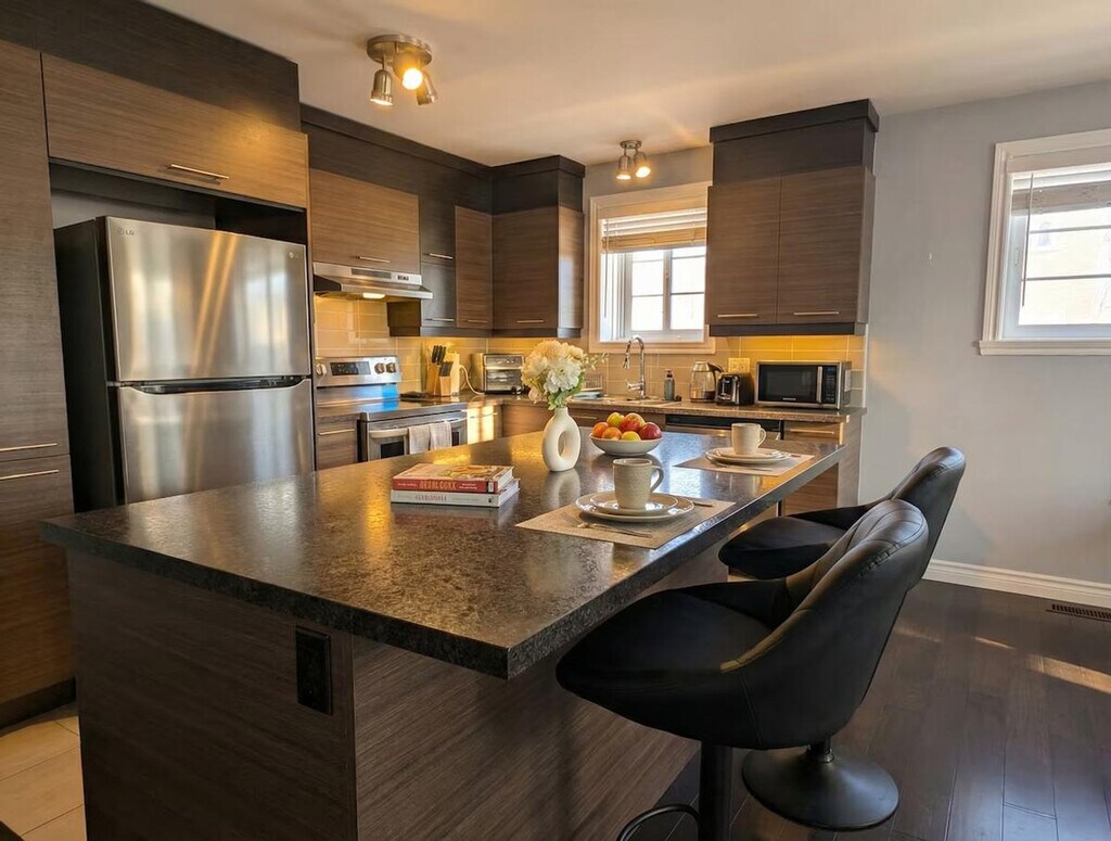 The advertised rate of C$4,463/month is the lowest available price, based on a 1 month(s) stay with a move-in date of April 7, 2026. Rates vary depending on the duration of stay, season, and other parameters. For exact pricing and additional pricing components, please visit our website and enter your desired move-in and move-out dates. The rate is applicable when billed upfront; it can be higher if billed in multiple payments. Welcome to your exclusive 1-bedroom haven where luxury meets unparalleled convenience. Located a quick 15-minute drive from YUL Airport, feel at home in this upscale getaway that is perfectly positioned to be your premium home base. Thoughtfully appointed with chic, modern finishes, this apartment features a cozy living space with an ultra-comfortable sofa and a spacious Smart TV. The gourmet, fully stocked kitchen is equipped with top-tier appliances and a complimentary Keurig coffee station with pods. The tranquil private bedroom features a plush queen-size bed and a bonus second Smart TV for cozy movie nights. Elevate your stay with an exclusive year-round hot tub and a generous private balcony. This space delivers a rare combination of unmatched convenience, a work-ready environment, and a high-end private retreat. Enjoy the freedom of independent, secure self check-in at any hour. Park up to two vehicles easily in your own dedicated spaces. Exceptionally close to YUL (just 15 minutes away), ensuring a smooth and incredibly convenient start and end to your trip. The fireplace is a decorative piece and not usable due to the potential risks. Check-out time is 11:00 AM, and flexible check-out times can be discussed and accommodated subject to availability. Includes a dedicated desk set-up and high-speed Wi-Fi. [SI]