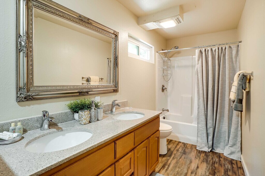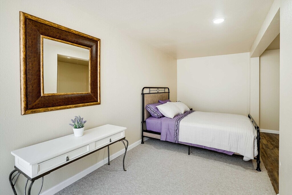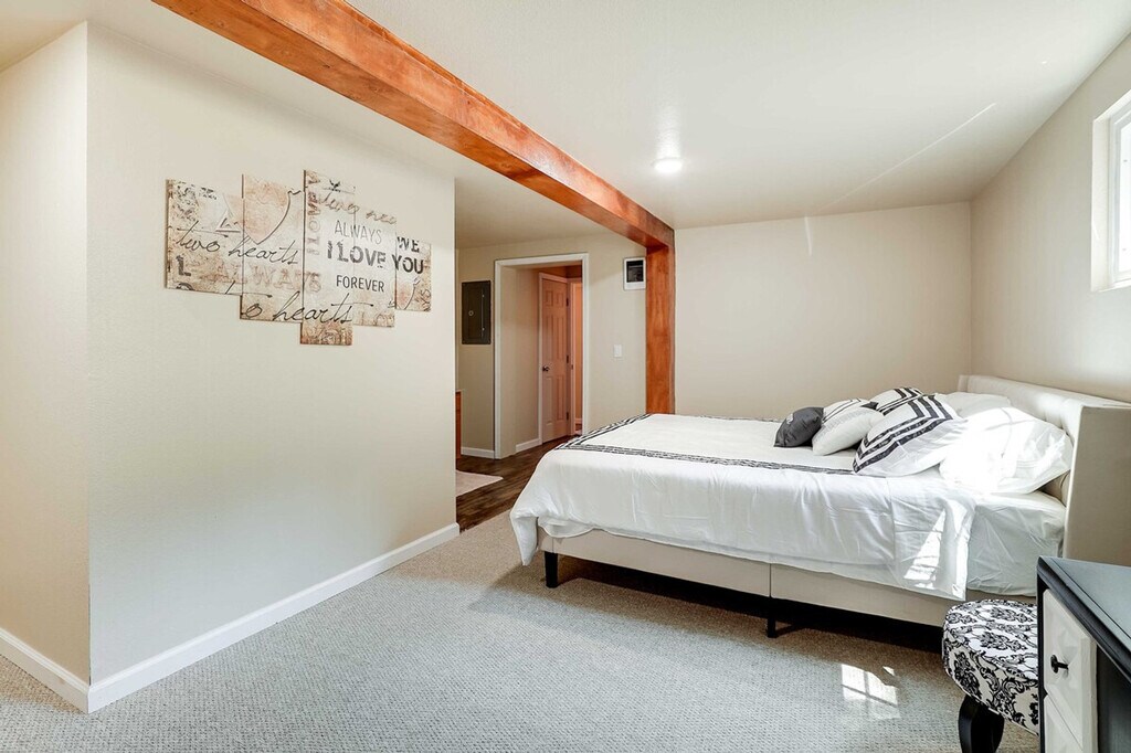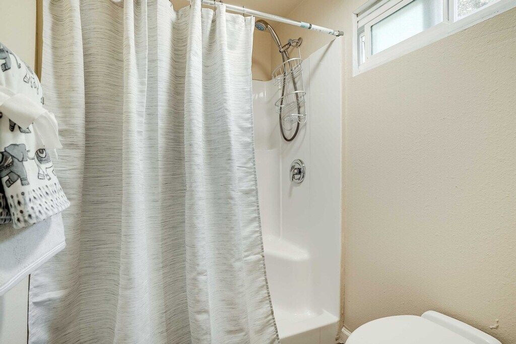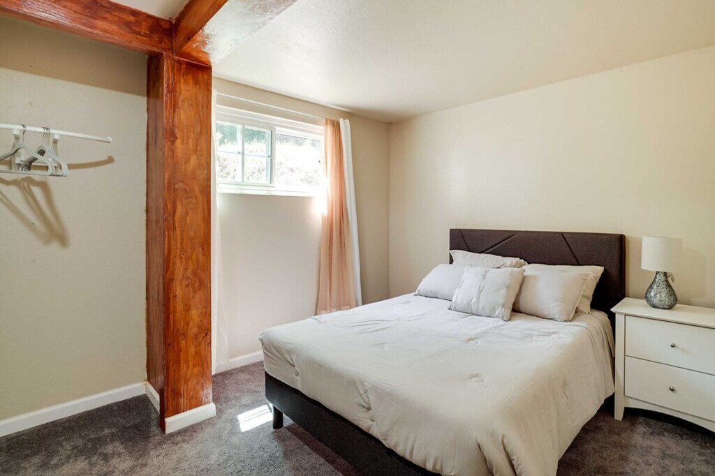 Venture to the Bay Area and feel at home in this 4-bedroom, 2-bathroom vacation rental house in Castro Valley. Ideally situated in the East Bay, this single-story home offers step-free entry via a small ramp and a concrete walkway, allowing you to explore the area and return to a peaceful retreat. Nearby, start your day with a walk across the Golden Gate Bridge and enjoy dinner waterfront at Pier 39. Cheer on the Golden Bears or the Golden State Warriors as you explore the highlights of the Bay! Unplug from it all and enjoy a family getaway to this Castro Valley home built into shipping containers. With 1,800 sq ft of space, expansive windows, and natural lighting, the open layout creates a welcoming atmosphere. The well-equipped kitchen includes a blender, coffee maker, cooking basics, instant pot, and spices, perfect for extended stays. Outdoor living is enhanced with a spacious fenced deck, gas grill, private yard, and patio furniture. Parking is available in the driveway for up to 4 vehicles, and EV charging is available. Situated in Castro Valley, this home provides easy access to the best of the Bay Area. Enjoy a walk across the iconic Golden Gate Bridge or a waterfront dinner at Pier 39. The location is perfect for sports enthusiasts eager to cheer on the Golden Bears or the Golden State Warriors. This property enforces strict quiet hours from 9:00 PM to 9:00 AM. Smoking and burning of wood are prohibited due to the high fire zone area, and the patio pit on the deck is for charcoal barbecuing only. No pets, events, parties, or large gatherings are allowed, and no additional or unauthorized guests are permitted on the property at any time. A photo ID may be required upon check-in, and an exterior security camera is located at the front door, facing out towards the entrance. The camera does not look into any interior spaces. Stay connected with the 5G WiFi network, making remote work-friendly stays a breeze. [SI]