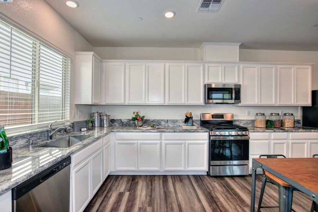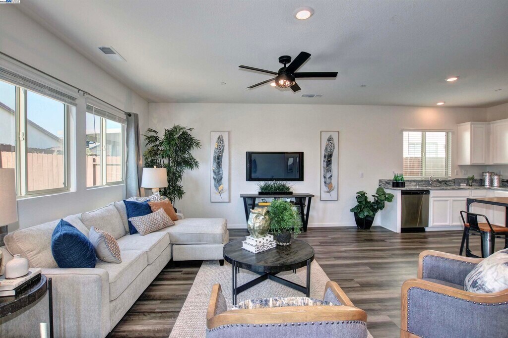 Welcome to this stunning and bright modern home,located at 5056 Lyrical Way in the desirable city of Roseville! This meticulously maintained single-story beauty offers an open floorplan with a spacious great room,perfect for both entertaining and relaxing. With 4 bedrooms and 2 bathrooms,there is plenty of room for your family to grow and thrive. The home comes complete with a washer,dryer,and fridge,making moving in a breeze. Energy efficiency is a top priority here,featuring owned solar panels that will help reduce your energy bills. The primary bedroom offers a walk-in closet,while the large backyard provides ample space for outdoor living. Enjoy the stamped concrete patio and a big yard with a large side yard—ideal for gardening or extra storage. Easy-to-maintain landscaping means you can spend more time enjoying your home. Don't miss out on the opportunity to make this incredible home yours!