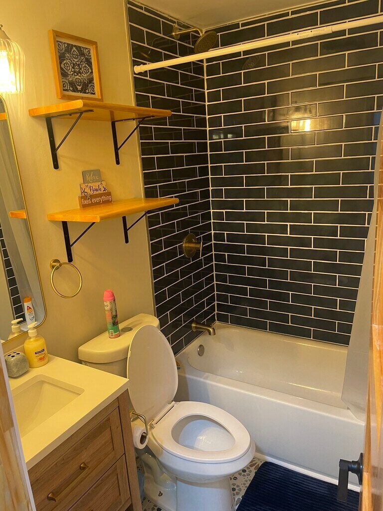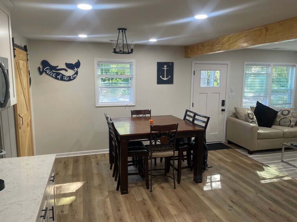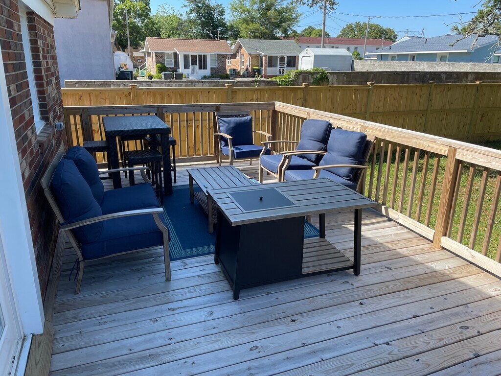 Gorgeous fully remodeled beach bungalow. Enjoy a stylish experience at this centrally-located home. Atlantic Beach's newest gem has finally arrived. Steps to the beach, roomy, comfy and close to all amenities you could ever need. This 3 bedroom, 1 1/2 bath cozy home has open floor plan, beautiful kitchen equipped with everything you would want. Granite counters, stainless steel smart appliances, farmhouse sink, etc… Wonderfully decorated home. Back private deck with gas fire pit and grill.