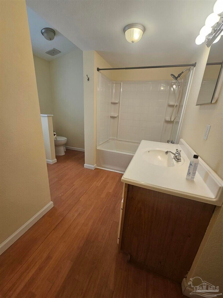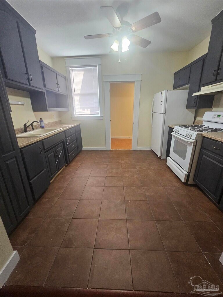 Perfectly situated between East Hill and downtown Pensacola,this 3-bedroom,3-bathroom cottage is just minutes from vibrant downtown and a short drive to Pensacola’s beautiful beaches,offering the ideal blend of convenience and coastal living. Inside,you’ll find gleaming hardwood floors,soaring ceilings,and large windows that fill the home with natural light. The spacious living area and kitchen—with abundant cabinetry—are ready for your personal touch,while additional rooms provide flexibility for office space,guest accommodations,or other uses. Classic architectural details,including ceiling fans and timeless finishes,add to the home’s character. A modern tankless water heater is also included,providing energy efficiency and convenience. Outside,the property offers inviting curb appeal with a welcoming front porch,blue siding,mature palm trees,and a fenced yard—well-suited for relaxing,gardening,or outdoor gatherings. This property combines historic charm with the opportunity for thoughtful updates,making it a standout in a sought-after location.