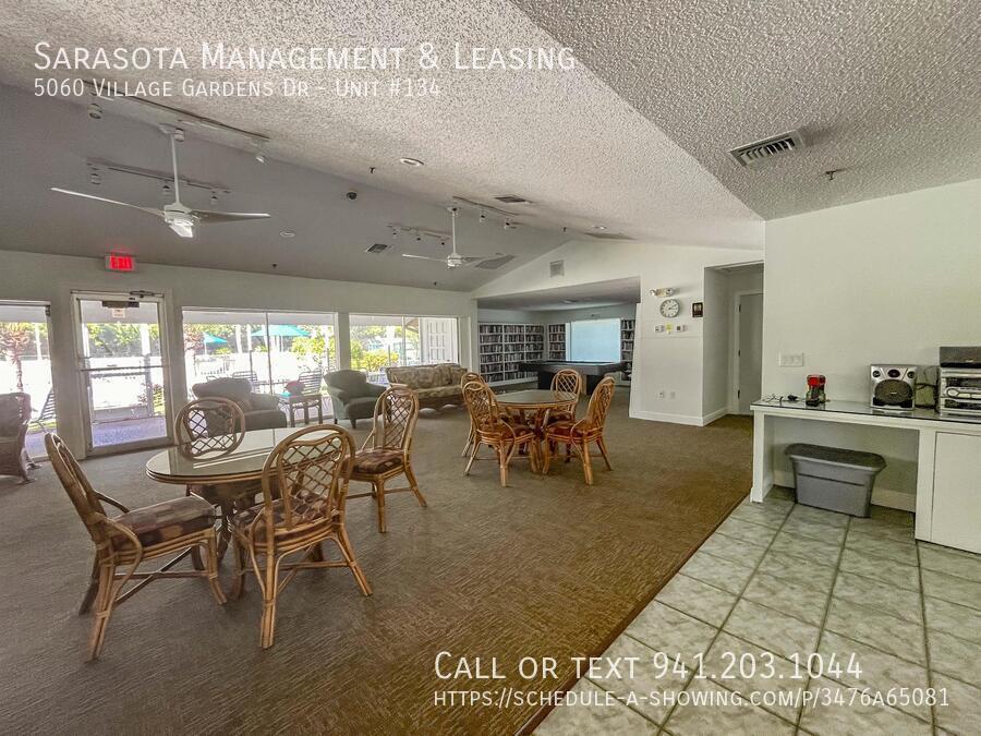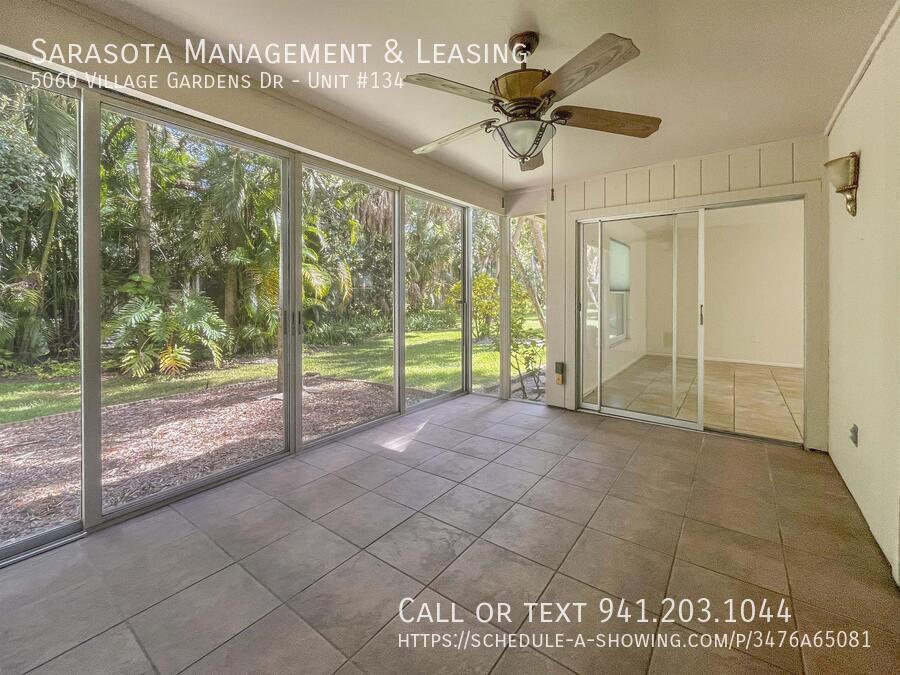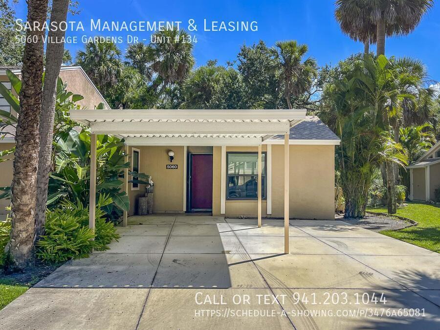 This is a 2 bedroom 2 bath Villa in the Village Gardens community! This home features a convenient floorplan with quick access to any room in the home. Just inside is the recently updated kitchen which features newer stainless steel appliances, solid surface countertops, a pass-through window to the dining area, and two windows that allow for plenty of natural light. Just beyond the kitchen is the combined dining and living area. The living room features sliding glass doors to the enclosed patio. The master bedroom also has sliding glass doors to the patio and an ensuite bathroom. The master bathroom has a large vanity and a private toilet and beautifully tiled shower. There is also a spare bedroom and a spare bathroom with a tub / shower combination. The enclosed patio features a wall of sliding doors that allow for plenty of natural light. Attached to the patio is a laundry room with washer and dryer. The backyard has lots of mature trees and landscaping. This community has a clubhouse with a pool, tennis, shuffleboard, and a full kitchen. The community is located not far from the airport, the Ringling Museum, the intracoastal waterway and beyond that is Downtown Sarasota. The community does not allow commercial vehicles, trucks of any kind (including pick-up trucks with covered, enclosed, or open beds), campers, motor homes, trailers, motorcycles (two and three wheeled), motor scooters, motorbikes, mopeds, gas-powered bikes, boats, or boat trailers. Please allow up to 3 weeks after lease signing for community approval before move-in. We score every application. If an application doesn’t score high enough, the resident may be required to place the equivalent of two months’ rent in a security deposit. Please be aware that leasing this property includes a non-optional Home Assistant Services Package that will cost an additional $30 per month. These services and their cost are separate from Tenant’s monthly rent payment and all other payments described in the Lease or any separate Lease addendums. The Home Assistant Services offered are described in the Resident Welcome Packet which can be viewed here: 2 Pets Max, 25 lbs Max, Dogs with Breed Restrictions Airport, Intercoastal Waterways SRQ Airport, Ringling Museum, Shopping, Restaurants 1 Car Carport Update Kitchen, Stainless Steel Appliances, Solid Surface Countertops, Pass-Through Window Combined Living and Dining Area Clubhouse, Pool, Tennis, Shuffleboard Clubhouse Community Pool Enclosed Porch Tennis Courts