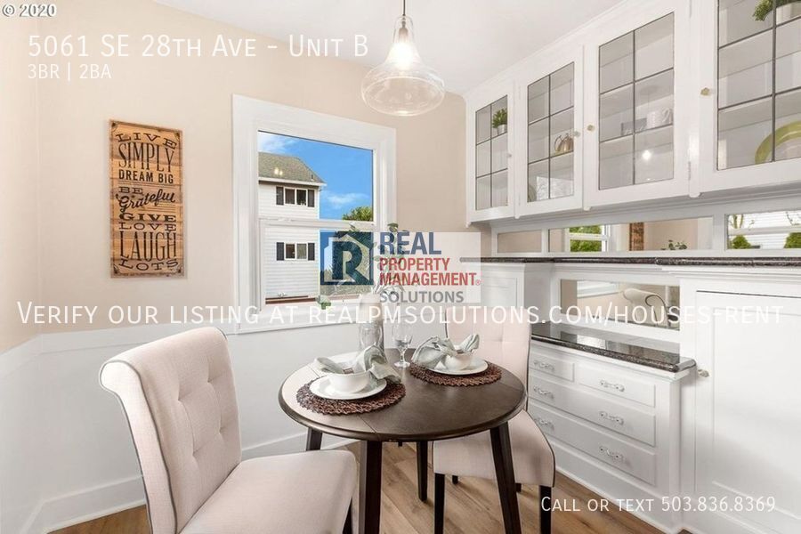 The Open Application Period begins October 11, 2025 @ 4pm. At the start of the Open Application Period, the date and time that each completed application is received is recorded and applications are processed in the order received. If applications are received before the Open Application Period, they are subject to an 8-hour penalty and processed in the order received (see PCC 30.01.086.C.1). This beautiful 1932 Old English 3 bedroom 2 bath duplex unit has gorgeous luxury vinyl flooring, light fixtures & freshly painted interior surfaces. The original charm has been carried through with the huge windows & original built-ins! Kitchen nook with vintage marble counter & original built-ins, newer appliances, cabinets, granite counters & eating island. Shared patio in back yard. Near Reed College, Sellwood & downtown. Utilities except for Garbage are not included in rent. SCREENING CRITERIA: Screening criteria may be found at