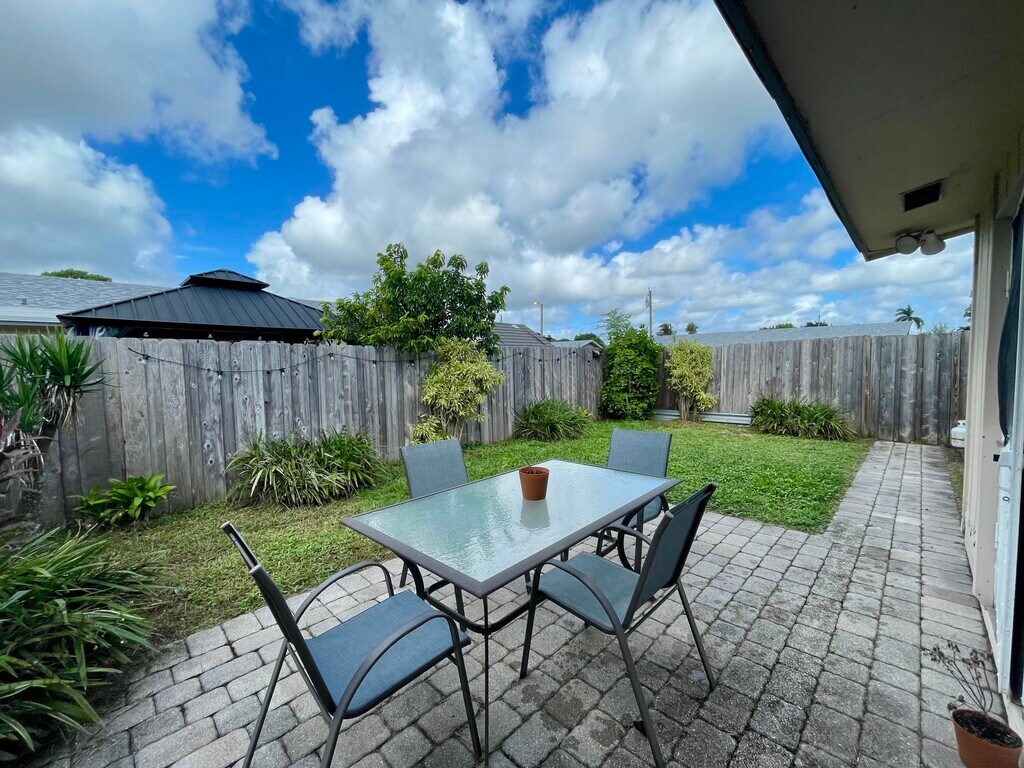 Beautifully remodeled available fully furnished or unfurnished 2-bedroom, 1-bath villa in the quiet community of PineCrest. This home features tile flooring throughout, a spacious fenced backyard, and a covered, screened patio with barbecue--ideal for relaxing or entertaining. The washer and dryer are conveniently located in the patio utility closet. Two assigned parking spaces add to the convenience.