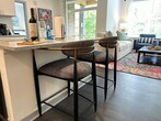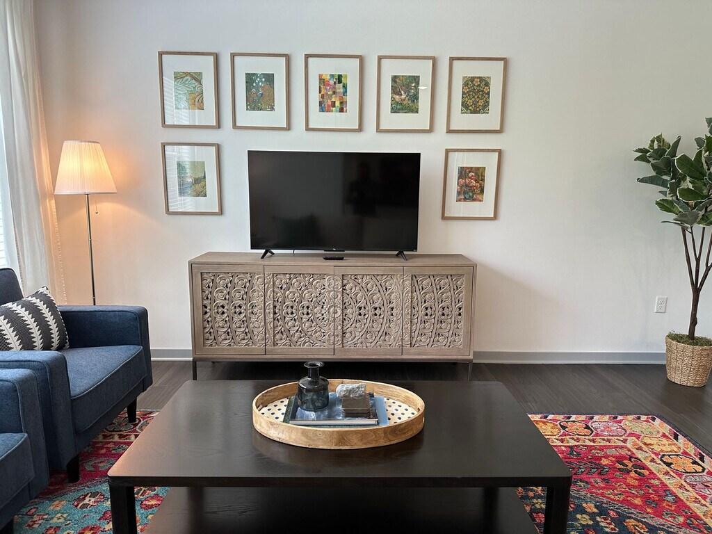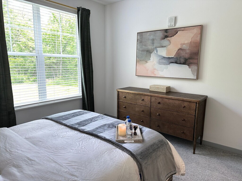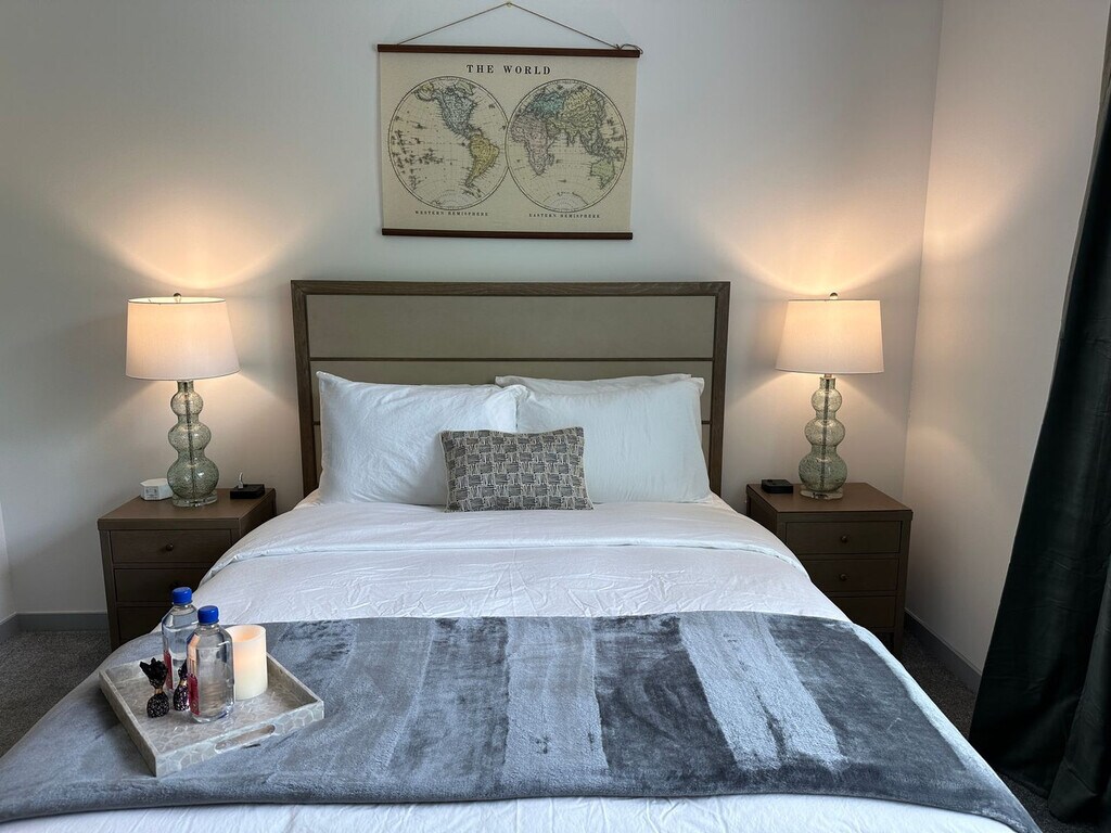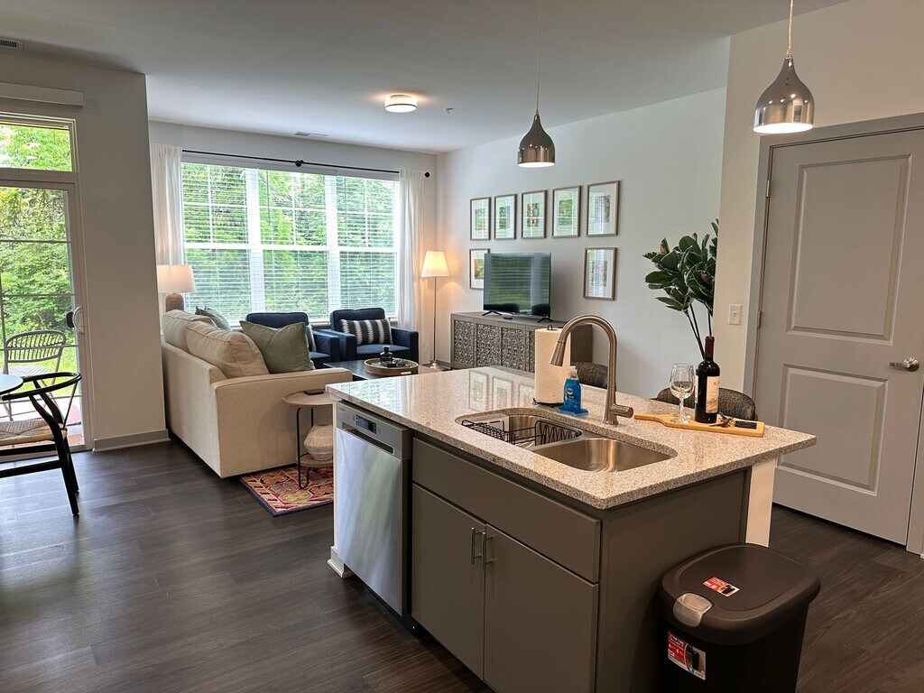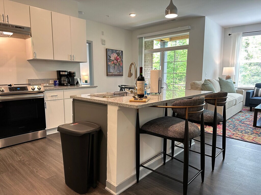 Welcome to the Duke Of Dublin, a fully furnished 2-bedroom, 2-bath apartment in a brand new gated community near Dublin, Hilliard, Honda, and OSU. Feel at home in this ground-floor unit with no stairs. This apartment features new premium furniture, a fully stocked kitchen with all the dishes and cookware needed to prep and serve a gourmet meal, and in-unit laundry with a full-size washer and dryer. The kitchen also includes full-size appliances, cookware, dishes, utensils, a coffee station with a drip, Keurig, and French press, a dining table for 4, and counter stools at the island for 2. Fresh towels and a starter supply of Asprey toiletries are provided. Enjoy access to the community pool, gym, and clubhouse. Up to 2 pets are welcome with prior approval, a maximum weight of 35 lbs per pet, and no commonly restricted breeds. An extra $10/night pet rent will be required, as well as a screenshot of recent vet records for dogs. Easy free open parking for up to 2 cars is available right in front of the apartment. Located in The Kensington at Riggins Run, a peaceful retreat tucked between Dublin and Hilliard, this apartment offers effortless access to the best of Columbus. It's a 5-minute drive to Bridge Park, 10–25 minutes to Cardinal Health, Nationwide, Honda, and Dublin’s top corporate campuses, and 5–10 minutes to Emerald Fields Park, Coffman Park, and the Heritage Trail. A short drive brings you to Dublin’s dining scene, including The Avenue Steak Tavern, Local Cantina, Kitchen Social, and Cap City Diner. Sweetwaters Coffee & Tea and Fox in the Snow Café are just minutes away, and Whole Foods, grocery stores, pharmacies, and local cafés are nearby. This is a 100% smoke-free community, so no smoking of any kind is allowed anywhere within the community gates. ID verification will be required before your arrival; after you book, a link will be sent to upload a photo of your ID and take a selfie, after which a quick background check will be run to send check-in details. Includes a desk, ergonomic chair, a 50” Smart TV with streaming and DirecTV, and high-speed Wi-Fi for remote work. Enjoy a private patio with seating and peaceful views of green space. [SI]