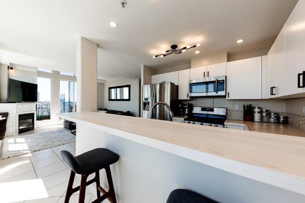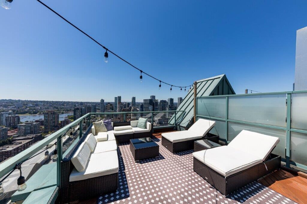 Feel at home in this exceptional penthouse in Yaletown, offering a sprawling 1,176 square feet of meticulously curated living space. This residence boasts panoramic southwest vistas, affording a commanding 270-degree outlook encompassing False Creek, English Bay, BC Place, and the city skyline. This special place is close to everything, making it easy to plan your visit. Recent renovations have thoughtfully enhanced the bathrooms, laundry area, and bedrooms. This apartment is centrally located, making it easy to plan your visit. [SI]