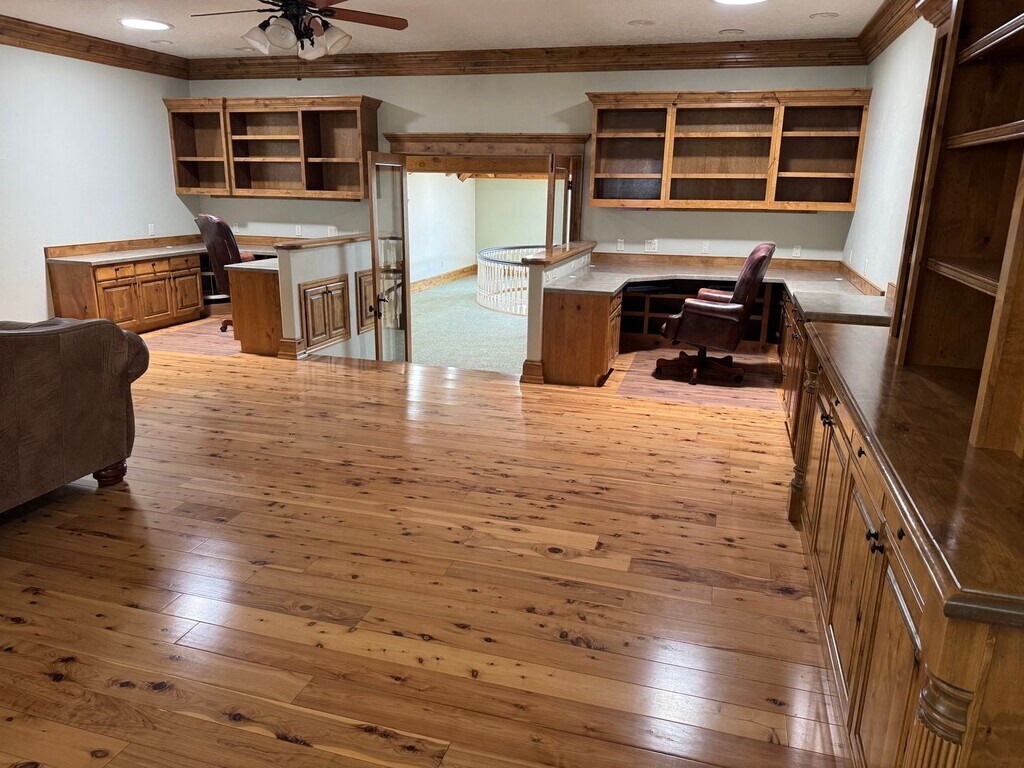 This is one of the community's most unique homes. This large property sits on 1.2 acres. The home is a two bedroom, three bathroom. Two bathrooms are full and one half-baths. The spacious home has just over 4,000 square feet. Full two-car garage with the home. There is a large shop with a half bath in the back that is not part of the lease, but could be negotiated. There is an upstairs and downstairs laundry hook up for washer/dryer. The kitchen has all the amenities and there is a large pantry as well as a butler pantry. The first level bedroom is an ensuite. The second story has a large entry at the top of the stairs. The primary suite has two built-in desks, living area, kitchenette, bedroom, two large closet with laundry area, and a large bath with soaking tub and roomy shower. It is a real must see! Tenant pays gas, water and electric. More information at: All applications require a pet screening profile. For more information on screening and restrictions: