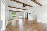 Beautifully updated all brick ranch home, perfectly blending classic charm with modern amenities! Featuring laminate floors throughout, the living room is enhanced with rustic beams and a cozy fireplace, creating a warm and inviting atmosphere! The large dining room is ideal for gatherings, while the eat in kitchen with a breakfast bar is perfect for casual meals. The primary suite boasts an updated full bath with a beautifully tiled shower! Both guest rooms are generously sized! The huge basement offers a second fireplace and ample storage space, providing endless possibilities. This home also includes a two car garage, offering plenty of space and convenience! Situated on a generous tree lined acre lot! Pet Rent Scale - Dogs: $25.00 per month