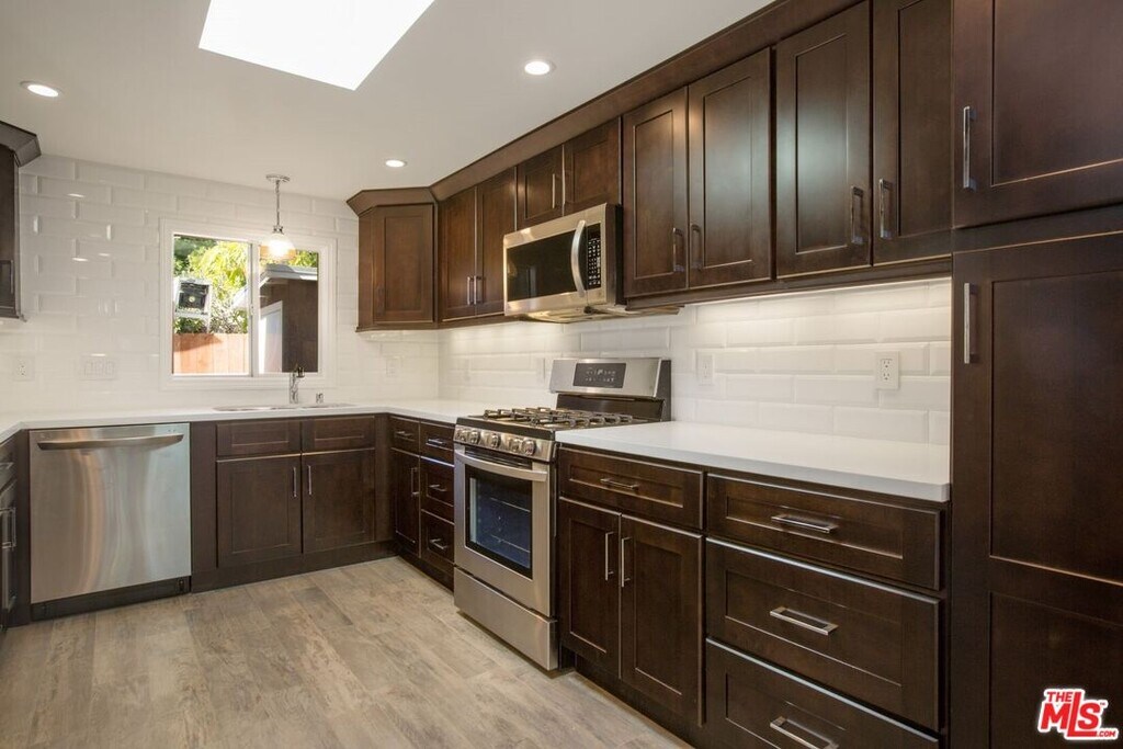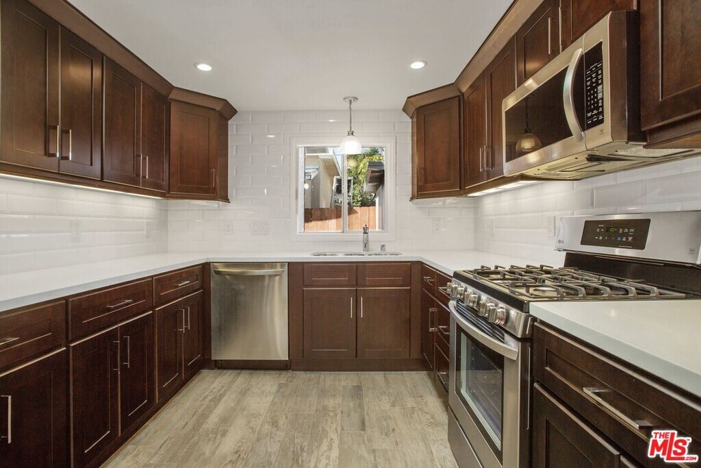 Private gated, fully remodeled home located on one of the best streets in West Hollywood. Three-bedroom, two-bathrooms. Manicured front garden with charming porch. Large open living with vaulted beam ceilings. French doors lead to serene outdoor spaces. Gourmet kitchen with stainless steel appliances and ample cabinetry. Nice size bedrooms, including one that is ensuite. Primary bedroom with spa-like marble bath with double sinks, walk-in closet, and French doors to a private deck. Central AC, Nest thermostat, full wiring for internet/tv, electric driveway gate (with a phone app), and coded front gate. Large driveway for private parking. Storage shed, tile flooring that looks like wood throughout, updated plumbing and electrical. The home is close to some of the city's best dining, shopping, and entertainment. MLS# 25620235