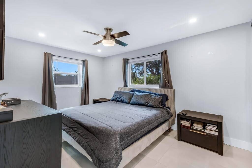 Fully renovated 3-bedroom, 1-bath home located in the highly sought-after Cooper City area. This centrally located property offers convenient access to shopping, dining, and major highways, making daily commutes easy. Situated within an excellent school district, it's an ideal home for families. The home features hurricane impact windows and doors, a new roof installed in 2024, and a well-appointed guest bedroom with a 65-inch TV. Enjoy outdoor living in the spacious backyard, complete with a covered patio, mounted TV, lighting, ceiling fan, and storage shed-perfect for relaxing or entertaining.