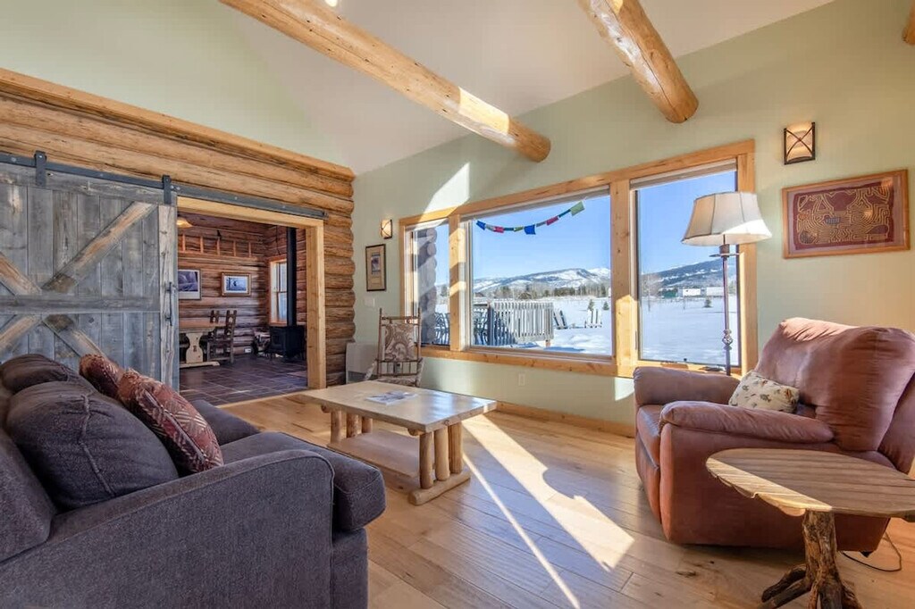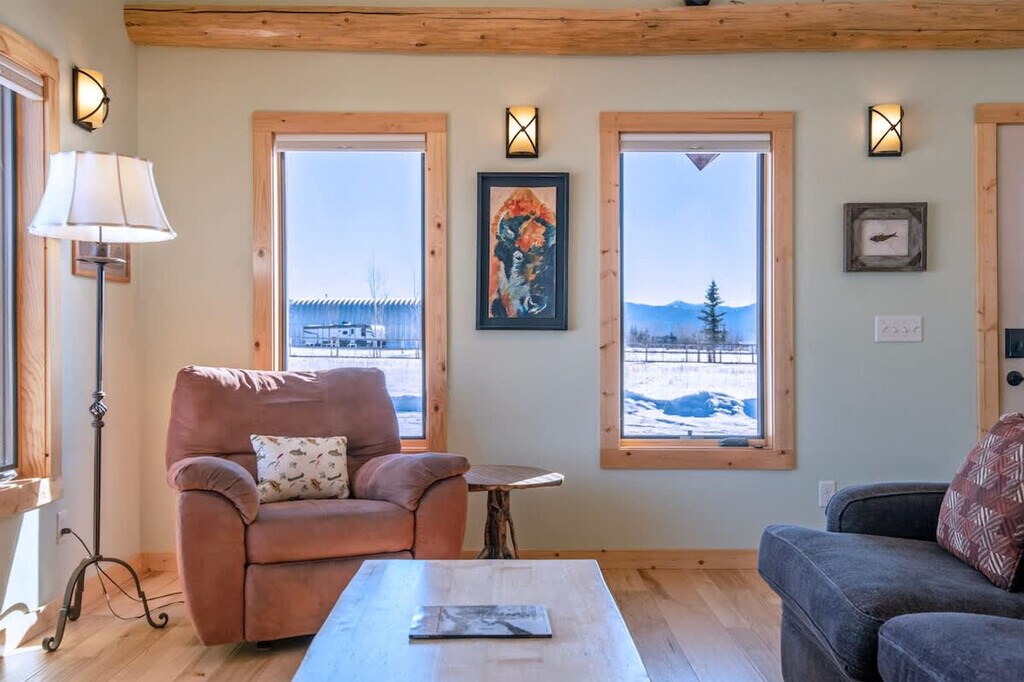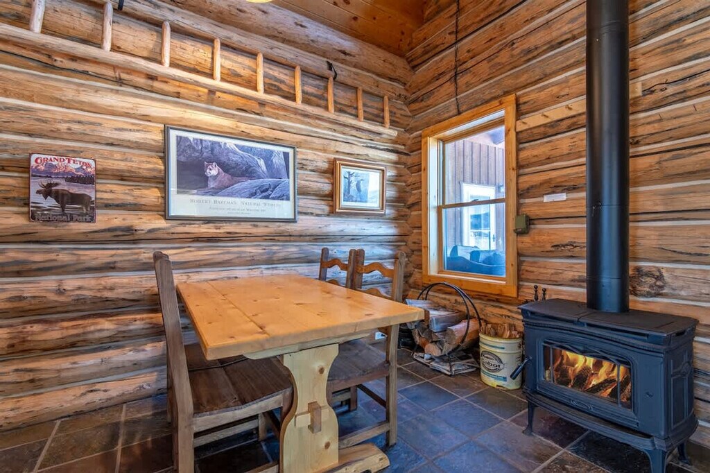 Embark on an unforgettable journey in this delightful hand-built log cabin, perfectly situated for exploring the majestic Yellowstone and Grand Teton National Park region. Ideal for up to four guests, it features a lofted sleeping area with a queen bed and a sleeper sofa in the living room. The cabin is equipped with a full kitchen, 1.5 bathrooms, a dining area, and a deck with breathtaking views of the natural surroundings. At the core of this property is the main cabin, a cozy sanctuary thoughtfully designed for comfort and charm. The cabin is equipped with a full kitchen to cater to all your cooking needs, 1.5 bathrooms for added convenience, a dining area for enjoyable family meals, and a deck with breathtaking views of the natural surroundings. Adjacent to the main cabin and accessible via the back deck, the bunkhouse offers extra sleeping space in a twin-over-twin bunk bed. It's important to note that the bunkhouse does not have a bathroom or running water, but it provides a cozy spot for a restful night's sleep. Experience the charm of cabin living with a cozy wood stove and an inviting outdoor fire-pit. During the warmer months, the shaded deck becomes a magical retreat, offering a cool, serene spot to relax and soak in the views. There is no TV at the cabin, yet there is strong Wi-Fi for streaming on your own devices. This property is a versatile retreat, whether you're a small group savoring the cabin's quaint allure or a larger gathering using both the cabin and bunkhouse. To make the most of your visit to this scenic region, use a mapping app to navigate to the various picturesque locations nearby. Distances to National Parks include Yellowstone - West Entrance at 1 hr 46 min (99.4 miles), Yellowstone - South Entrance at 2 hr 12 min (95.3 miles), and Grand Teton at 49 min (32.9 miles). Distances to Ski Resorts include Grand Targhee Ski and Summer Resort at 30 min (17.4 miles) and Jackson Hole Mountain Resort at 41 min (29.2 miles). Distances to Regional Airports include Idaho Falls, ID (IDA) at 1 hr 17 min (67.9 miles), Jackson, WY (JAC) at 54 min (37.4 miles), and Bozeman, MT (BZN) at 3 hr 32 min (190 miles). Distances to area towns include Driggs, ID at 8 min (5.3 miles), Victor, ID at 5 min (3.6 miles), Jackson, WY at 40 min (28.0 miles), and Teton Village, WY at 40 min (29.3 miles). Guests can enjoy the home on their own, with a full team available 24/7 to help as needed. The number of people at the property should not exceed the maximum sleeping capacity. Quiet hours are from 9 pm to 8 am. No events are allowed, including parties, large gatherings, and weddings. No smoking or vaping is allowed in the home or on the decks, and an additional charge will be applied if any butts are found on the property. Please turn all exterior lights off at night. Drive slowly in the neighborhood in respect of children, pets, and wildlife. A maximum of two licensed vehicles is allowed in the driveway and garages. No riding snow machines, dirt bikes, or ATVs in the subdivision or at the rental property. Do not burn candles or incense in the home, and no fireworks are allowed on the premises. Keep all main entry doors locked when not occupied. Fines will apply for violations, including leaving garbage in the house or litter on the grounds, failure to disclose or clean up after pets, smoking in the house or garage, failure to follow house rules and respect posted signs, failure to follow check-out procedure, mistreatment of hot tub, or violations of local laws. A minimum $500 fine will be applied for smoking, vaping, or marijuana use in the house, violation of house rules, posted signs, laws, or failure to vacate at check-out time. Strong Wi-Fi is available for streaming on your own devices.