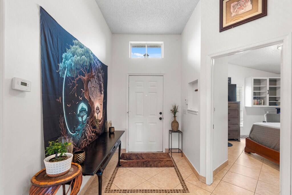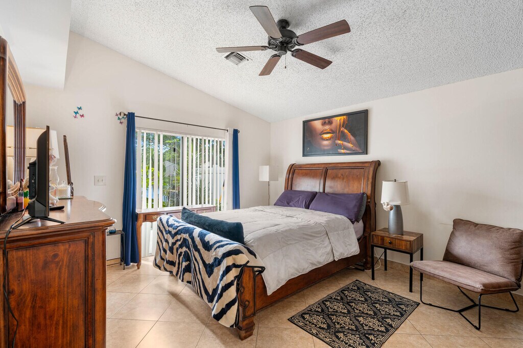 Well-maintained 3BR/2BA single-family home with 2-car garage in a gated, lakefront community. Features an open floor plan with ceramic tile throughout, spacious living and family rooms, dining area, and split bedrooms with large closets. Enjoy lake views from the screened porch or open deck. Foxhall is a family-friendly neighborhood with HOA that includes high-speed internet/cable, pool, dog park, and playground. Minutes from PBI Airport, I-95, Turnpike, beaches, golf, dining, and shopping. This home won't last!