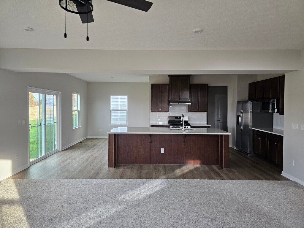 Brand new 3331 SQFT home with Finished Basement in a very desirable community location, within the highly rated Olentangy School District. Home comes with 3 bedrooms and 3.5 bathrooms, home office and formal dining room. Large master bedroom with huge walk-in closet. Big loft area that offers space for use as TV room, game room or second office space. Kitchen and living area offer a wide-open layout with modern style large center kitchen island with modern finishes. Plenty of room to host the next gathering with family and friends. Lots of windows that let natural light come in, the bedrooms are all good size with windows and closets. Fans will be installed in all bedrooms and living area. Need space for both cars, bikes, and all those holiday decorations and keepsakes? There's plenty of room for everything with a 2 car garage and full finished basement. Located in Lewis Center with top-rated Olentangy Schools, you are only minutes to Route 23 and I-270, making Downtown Columbus easily accessible and your work commute short! Daily errands are a breeze with Kroger, Meijer, Aldi, and more nearby. Shop or dine with friends and family at Senor Antonio's, Wings and Rings, or numerous options in Polaris just a short drive away.