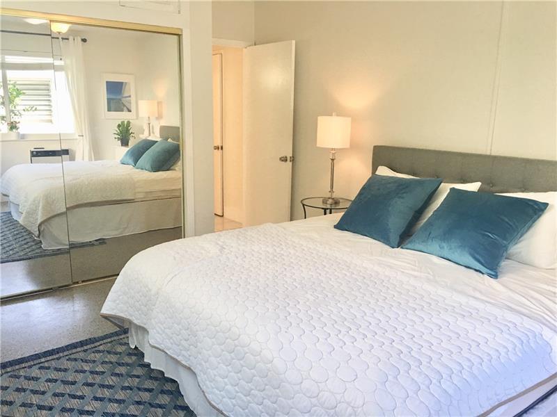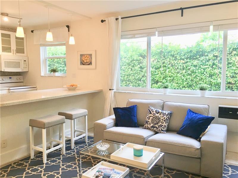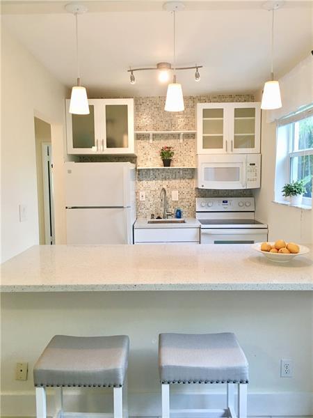 WELL DESIGNED ONE BEDROOM ONE BATH UNIT. FRESH AND CLEAN EUROPEAN FURNITURE. GREAT KITCHEN W/WINDOW AND W/QUARTZ COUNTER TOPS, WHITE CABINETRY AND APPLIANCES(MICROWAVE, REFRIGERATOR, DISHWASHER ,ICE MAKER, STOVE AND GARBAGE DISPOSAL) NEW BATHROOM W/WINDOW. TILE WALLS &FLOORS. HURRICANE IMPACT WINDOWS. NICE BIG CLOSETS. KING SIZE BED. TWO AC'S. HEATED POOL, 1 ASSIGNED PARKING SPOT, PRIVATE KEYED ENTRANCE, BEAUTIFUL SERENE GROUNDS, COMMUNITY LAUNDRY DRY, 5MIN WALK TO THE BEACH, QUIET NEIGHBORHOOD. ALL AGES WELCOME. FULLY FURNISHED. TURN-KEY UNIT. PET-FRIENDLY (max 20 pound) RENT $2000 MONTH ONE YEAR LEASE ONLY. FIRST, LAST & SECURTIYAT MOVE IN.