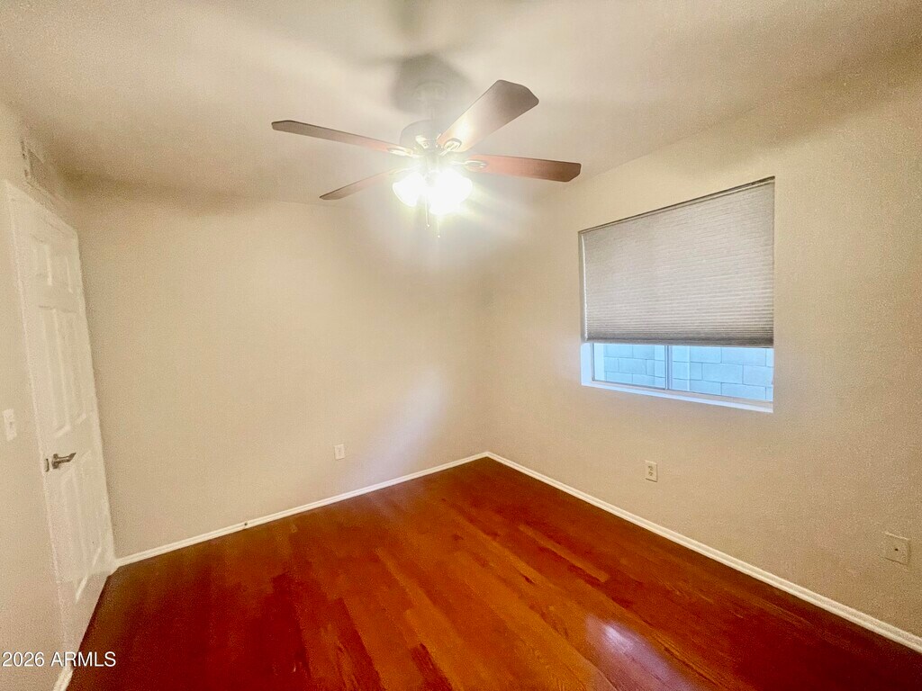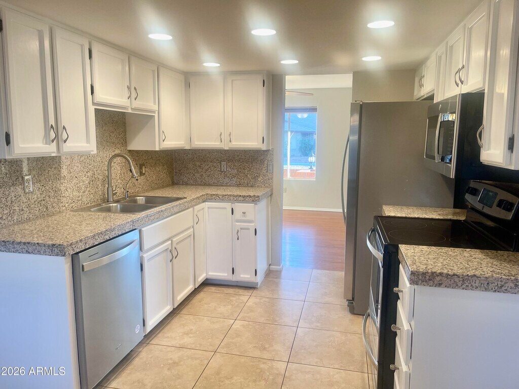Spacious single-level 4 bed,2 bath home in a great North Phoenix location with no HOA! Features a split floor plan,two separate living areas,a cozy wood-burning fireplace,hardwood and tile throughout,and a bright white kitchen with granite countertops and stainless steel appliances. Enjoy a private master suite with walk-in shower,2-car garage,and a large backyard with a covered patio--perfect for entertaining!