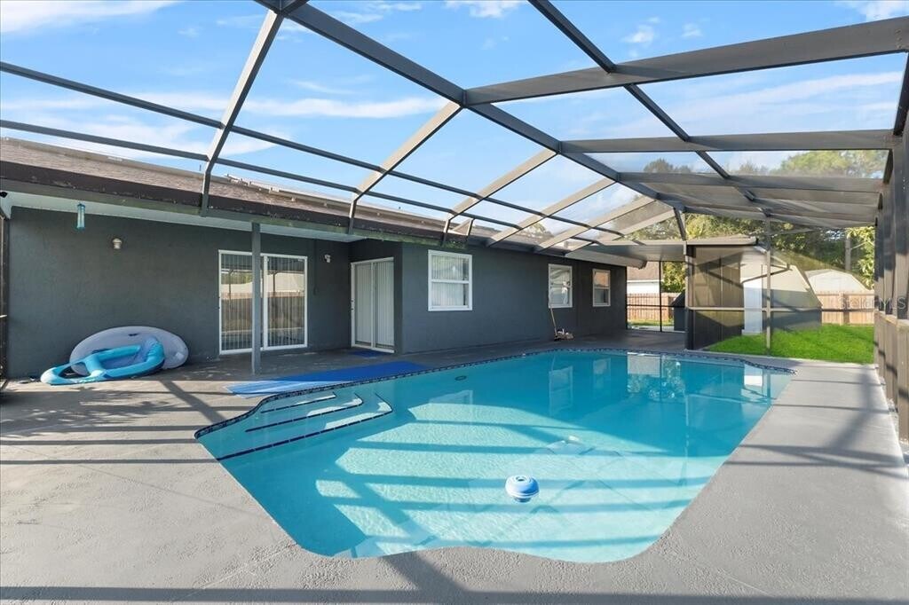 NO REAR NEIGHBORS,POOL,INTERNET,CABLE,HUGE DRIVEWAY,TWO CAR GARAGE,FRONT PORCH,BACK PORCH,UPDATED KITCHEN,OVER 2,000 SQ. FT.,AND AWESOME COMMUNITY AMENITIES! Welcome to the kind of home that’s built around real life. The layout flows exactly how you want it to — with space to gather,space to unwind,and room for everyone to spread out. The living,dining,and family room areas connect in one continuous line,so conversations (and people) move easily throughout the heart of the home. Fresh interior and exterior paint keeps everything feeling bright and updated,and tile flooring throughout means low-maintenance living — easy to keep clean and comfortable day-to-day. The kitchen sits at the center of it all,redesigned with new cabinetry,granite countertops,and a full pantry closet — an everyday workspace that feels functional and inviting without trying too hard. All three bedrooms are tucked down the hall,including a generously sized primary bedroom with dual closets,an ensuite bath,and direct access out to the pool — morning coffee by the water,late-night swims,quiet breaks outside… it just makes sense. Two additional bedrooms and a refreshed guest bath sit nearby in the same hallway layout that balances connection and privacy. But let’s be honest — the real star is outside. Your own screen-enclosed pool and patio turns the Florida heat into something to look forward to. There’s plenty of covered space for lounging,grilling,or working from your laptop in the shade while the pool calls your name. The fully fenced backyard keeps it private with no rear neighbors,and the shed/outbuilding in back is the bonus you didn’t realize you needed — a workshop,stored seasonal decor,hobby gear,or just the space for all the things you never know where to put. A two-car garage makes parking and storage easy. And you’re inside Poinciana Villages,which means access to community pools,clubhouse,fitness center,pickleball + basketball courts,playgrounds,parks,trails,and more — amenities that actually get used,not just advertised. Everyday errands,groceries,schools,and dining are all close-by,with simple connections to major roadways. This is a place that makes life feel easy — comfortable,connected,and ready for whatever your days look like. MLS# O6357515
