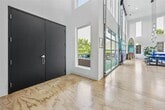 Move in ready! This property comes fully furnished and the landscaping is covered with the rent! A Bold Architectural Statement Among the Trees! Welcome to a home where cutting-edge design meets everyday livability—an industrial-modern retreat tucked away on nearly an acre of wooded serenity. Rising three stories above the landscape, this one-of-a-kind residence is built to impress from every angle, offering unmatched privacy, panoramic views, and next-level craftsmanship. Step inside and be captivated by the interplay of steel, glass, and concrete—materials chosen not just for durability, but to create a home that feels as much like an art installation as a place to live. Towering ceilings (up to 24 feet) and expansive glass garage doors blur the line between indoor and outdoor living, framing treetop views that stretch for miles. The kitchen is a standout—equal parts showpiece and workspace—with custom metal-faced cabinetry, quartz surfaces, high-end appliances, and sleek finishes throughout. A pair of primary suites—one on the main level and the other upstairs with its own balcony and spa-like bath—offer flexible luxury, while additional bedrooms allow room to grow, host, or create. For the car collector or maker, the 2,600 sq ft garage is nothing short of a dream: epoxy-style flooring, massive 20’ x 9’ garage door, integrated steel beams for lifts, and enough room for twelve vehicles, toys, or tools—plus its own half bath. Engineered for longevity and efficiency, the home includes a commercial-grade PVC roof, foam insulation, tankless water heaters, dual HVAC systems, and thoughtfully placed outdoor gas lines for effortless entertaining. This is not just a house—it’s a lifestyle statement. Rugged yet refined, private yet open, and unlike anything else in the region. Come experience modern living, reimagined.