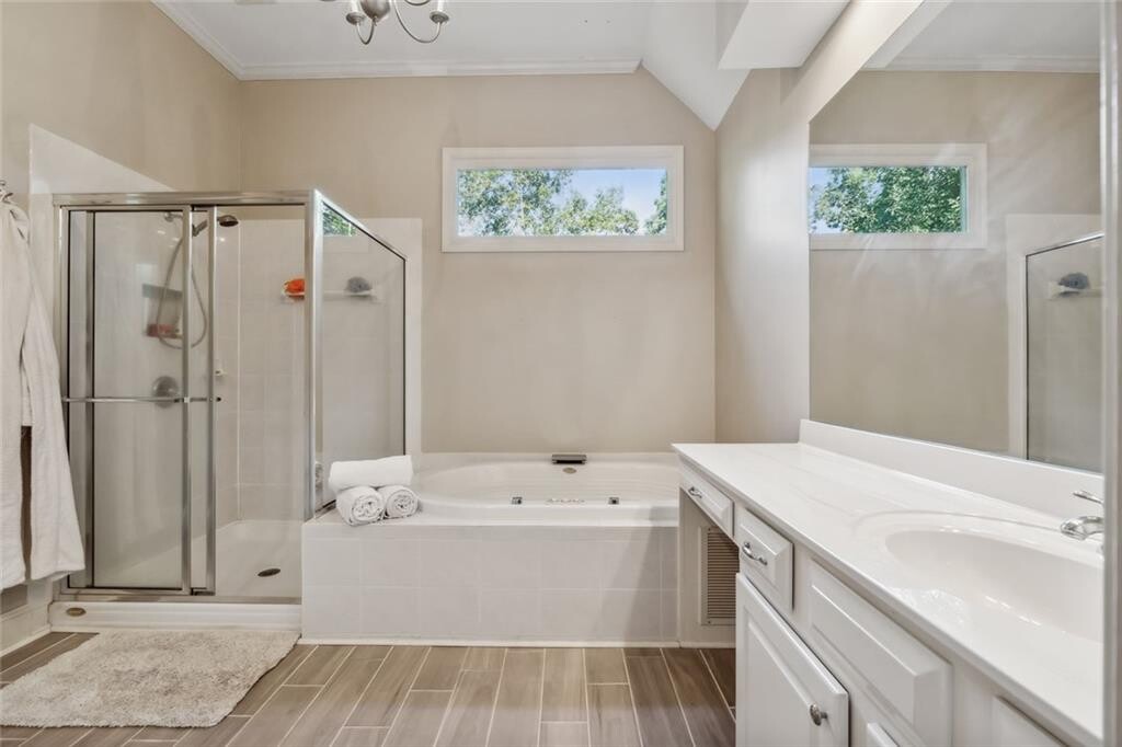 Welcome home to this beautiful example of what Woodmont has to offer! This 3-sided brick home has nearly 4,000sf of living space. As you enter the home,the grand two-story foyer welcomes you. Head to the open concept living area,where the well-appointed kitchen opens to the living room where the vaulted ceilings create an amazing place to hang out or entertain. There is also a formal dining area in addition to flex space that could be used as an office,play area,or sitting room. Head upstairs and the primary suite greets you with vaulted ceilings and a beautiful window overlooking the wooded backyard. The primary bath includes double vanity’s,a soaking tub and an over-sized shower. Additionally,there are 3 secondary bedrooms upstairs,along with 2 bathrooms and the laundry room. Head to the finished terrace level where a full bathroom and additional living spaces provide endless options for living and entertaining. There’s also a full bar where you can prep your drink and head to the back deck which offers both covered and uncovered outdoor living space options. Side-entry 3 car garage provides easy access to the kitchen on the main level. This home sits in the Woodmont community,which offers resort style amenities including 2 pools,10 tennis courts,an 18-hole award winning semi-private golf course,restaurants and more. All while being located in the sought after Creekview school district! 1.5 month security deposit. Inquire about pets. MLS ID 7719907
