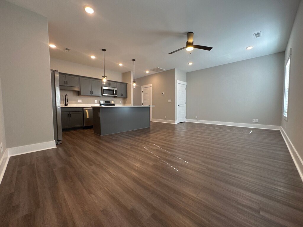 Built in 2024, this stylish end-unit townhome features 3 bedrooms and 2.5 baths with a spacious open-concept main level. The bright living area flows seamlessly into a modern kitchen complete with a center island, quartz-style countertops, and stainless steel appliances—perfect for everyday living and entertaining. Upstairs, the generously sized primary suite offers a large walk-in closet, while two additional bedrooms and a conveniently located laundry area complete the second level. Additional highlights include an attached one-car garage with driveway parking and a private back deck ideal for outdoor relaxation. Located in the gated 11 South community, HOA-provided services include lawn care, exterior maintenance, and trash service, offering low-maintenance living. Conveniently situated in Clarksville with easy access to I-24, shopping, and dining.