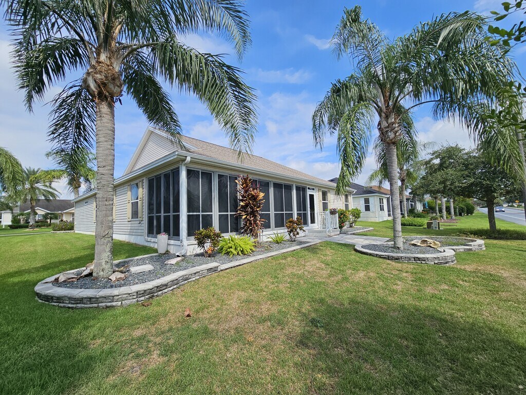 RENT BEFORE YOU BUY!!! LONG TERM UNFURNISHED, Located in the Village of Mallory Square. Conveniently located near Sumter Landing and Brownwood Town Center, and close to shopping on 466A. 3 bedroom / 2 bath updated, Large 2 car garage with tons of storage, and comes with a freezer., Features an open floor plan.. The remodeled kitchen is fully equipped with stainless steel appliances: a refrigerator, dishwasher, microwave oven, gas range, and garbage disposal—quartz countertops. Seating for many is available at the breakfast bar. Along with a pantry, and lots of cabinetry, conveniently located next to the laundry room, leading to the garage..The dining room open layout includes sliding glass doors to the enclosed lanai.. The primary bedroom fits a king-size bed. And sliding glass doors to the enclosed lanai. The large primary bedroom has two walk-in closets and a dual vanity. featuring a walk-in stall shower and a private toilet room. The guest bedrooms fit a queen-size bed. The 3rd bedroom has two built-in cabinets to serve as an additional closet space. Tenant pays all utilities, Gas, Water, Electric, including Village IDs; $50 for 2 annually. The Villages is an active Senior Community for residents 55 years +. Young visitors are allowed for limited periods.,