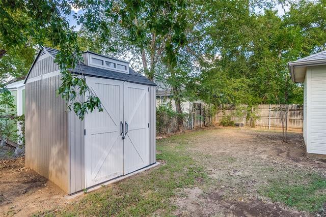 Charming home, within walking distance to Downtown Mineral Wells and all it has to offer! Warm entry to the living area and breakfast nook. The kitchen has a great layout to make cooking a breeze. There is a separate office built out in the garage, completely isolated for those who work from home or use it as a personal retreat. Split primary with tray ceilings, en suite bathroom and large walk in closet. Hall bath includes walk in shower with ample space. 2 other bedrooms offer plenty of natural light and good closet space. A separate storage area attached and offers access to the back yard. Built in shelves currently being installed in living area. Back yard offers , plenty of trees and includes 3 storage buildings.