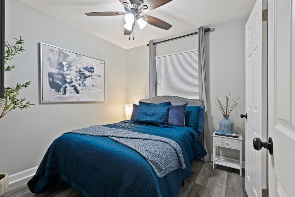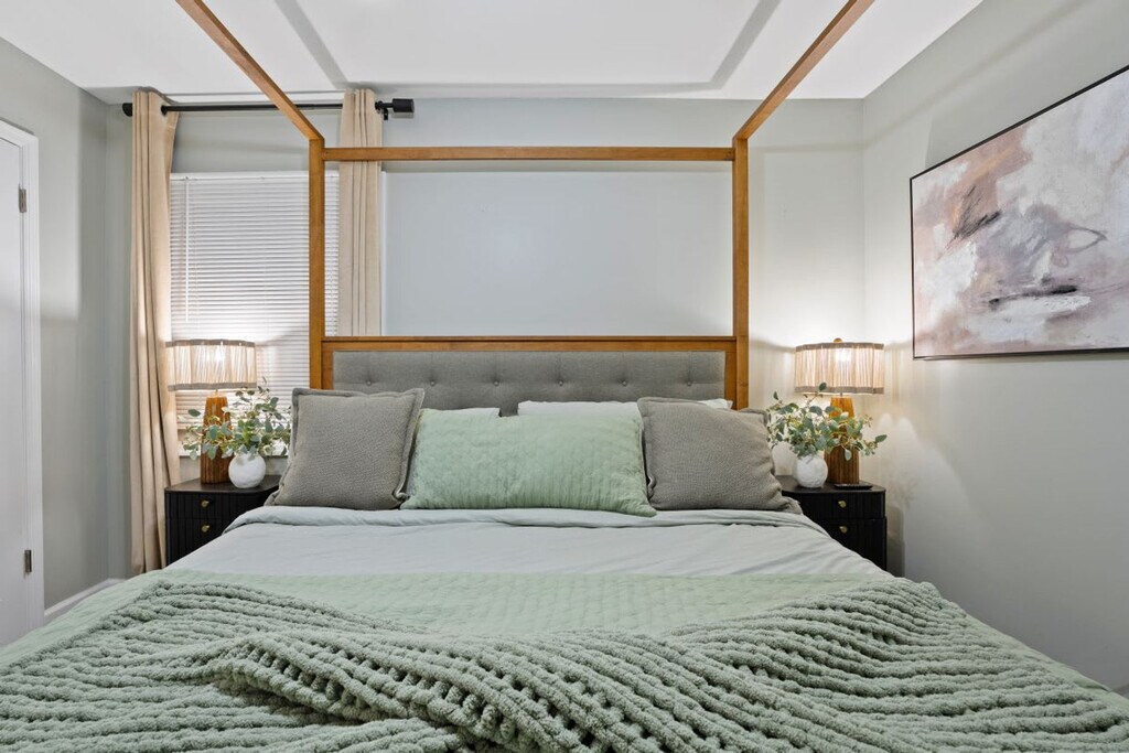 Feel at home in this spacious 4-bedroom, 2-bathroom home designed for group stays, accommodating up to 8 guests. Located near O’Hare Airport, I-90, and the Rosemont entertainment district, this home offers convenience and comfort with a large backyard and off-street parking. Perfect for families or groups, it provides easy access to shopping and dining. This inviting home is ideal for larger groups, offering space and comfort in a prime location. It features 4 spacious bedrooms with a king-size bed in Bedroom #1 and queen-size beds in Bedrooms #2, #3, and #4. The 2 full bathrooms are stocked with essentials, and fresh linens and towels are provided for all guests. The fully equipped kitchen includes cooking essentials, a coffee maker, and kitchen basics. Enjoy high-speed WiFi for remote work or streaming, and a large backyard with outdoor seating for gatherings. A washer and dryer with detergent are also available. Pets are welcome with a $200 pet fee per pet. Off-street parking is available for added convenience. The neighborhood in Des Plaines, IL is a charming and peaceful residential area that offers a wonderful community environment. Characterized by well-maintained homes and tree-lined streets, it exudes a welcoming atmosphere. Residents enjoy convenient access to parks, green spaces, shopping centers, restaurants, and entertainment options. Transportation is easy with quick access to major roads and highways, including Route 14 and Interstate 294, making commuting to downtown Chicago and other areas accessible. Guests must be at least 21 years old to book. There is a strict no-smoking policy inside the home, with a $500 deep cleaning fee for violations. Parties or large gatherings are not allowed, with a $1,000 fine and immediate eviction for violations. Quiet hours are from 11 PM to 7 AM, and noise complaints may result in a $300 fee and termination of the reservation. Tampering with outside cameras will result in a $350 fee and eviction. Unauthorized late checkouts will incur a $100 fee. Fast WiFi is available throughout the home, making it remote work-friendly. A laptop computer is not included. [SI]