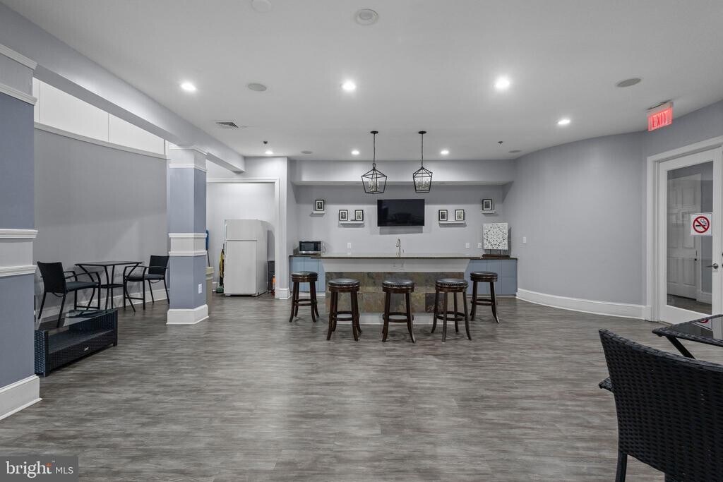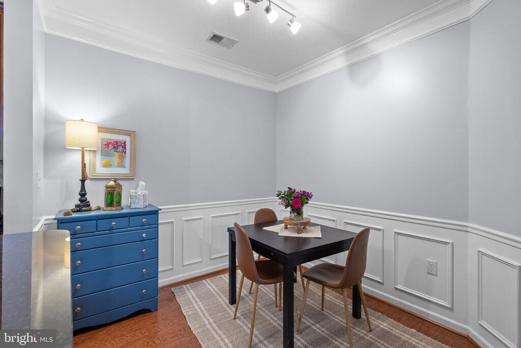 Stylish, move-in ready one-bedroom condo in the sought-after gated community of Westchester at Stratford Club. Real hardwood floors flow throughout the main living areas, with carpet in the bedroom for added comfort. Crown molding and boxwood trim in the dining area give the space a polished, elevated feel. The kitchen features granite countertops, a wrap-around breakfast bar, tile backsplash, gas range, and plenty of cabinet and storage space. The living room and bedroom are flooded with natural light thanks to generous windows, and both offer easy access to your private balcony. In-unit washer and dryer included. Community amenities are impressive: pool, fitness center, clubhouse, walking paths, and beautifully landscaped grounds — all within a secure, gated neighborhood. You're minutes from the Dulles Greenway, Route 7, Leesburg Premium Outlets, and the shops and restaurants of historic downtown Leesburg. Available May 11, 2026. No pets.