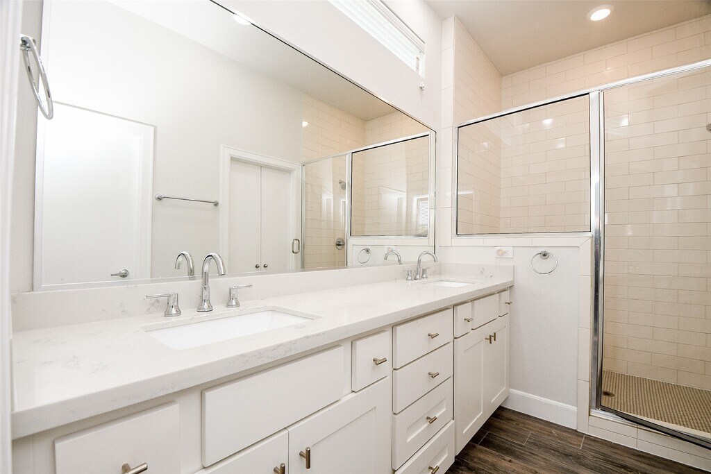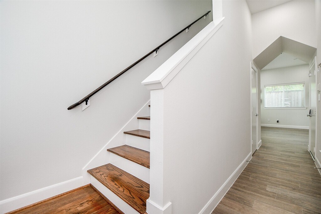 Beautiful and modern,this 2018 constructed property is in a gated community and offers a spacious,open floor plan. Large living and dining combination on the first level,along with a powder room. Kitchen has huge island and quartz countertops. Wood and tile floors downstairs. Primary and two additional spacious bedrooms and two full baths up. Balcony off one of the secondary bedrooms. Corner lot with tons of natural light in all rooms. Smart home with electronic front lock,motion sensitive lights for the stairs and primary closet. NEMA 14-50 power outlet for EV charging in the garage. Community offers a dog park and guest parking. Great location with easy commute to downtown,the Galleria,Medical Center and the airport. Easy quick access to shopping,entertainment and eateries in the Heights and Washington corridor. Water,sewage,trash included. HOA maintains yards. Home is move-in ready and comes with Washer,Dryer,Refrigerator. MLS# 17202121