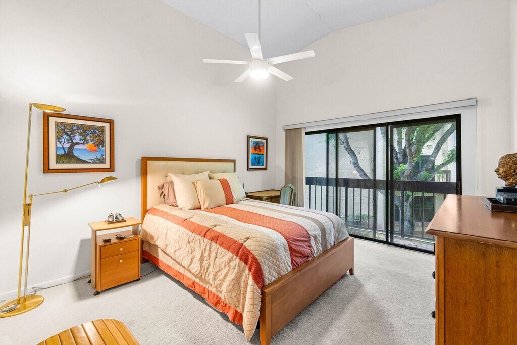 Courtesy of Serhant Posted by Andrew Coleman with EXP Realty . Available seasonal ($4,950) & annual ($2,750). Lovely lakefront furnished 3 bed/2 bath condo available for seasonal or year-round rental in Boca Delray Golf & Country Club with golf, pickleball, tennis and social activities (all included in monthly rent except for nominal pay-as-you-play golf fee). Unit 321 is a second floor corner unit featuring a larger floor plan, hurricane protection, vaulted ceilings, eat-in kitchen area and updated flooring and carpeting. The 3rd bedroom has been converted into a den with a large television, a sleeper sofa for additional guests and a piano. Walk-in closets in both the master and 2nd bedroom provide ample storage. Screened-in porch (with dedicated storage) overlooking the lake and beautiful foliage offers a very serene setting.