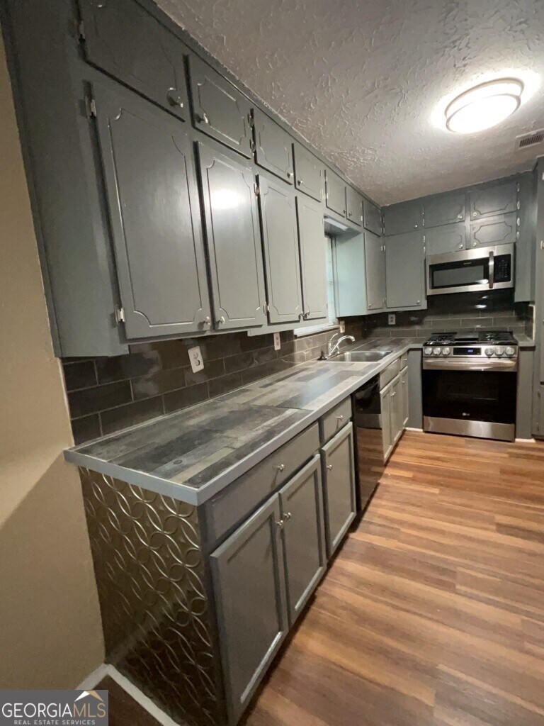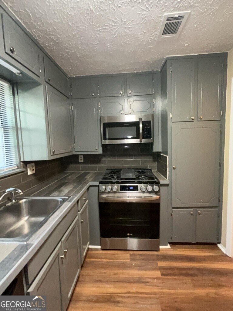 5089 Victor Trail. Managed by EXCALIBUR HOMES. 3 bedroom 2 bathoom home on HUGE CORNER LOT. Conveniently located to I-85! This split level home features 3 bedrooms, 2 baths, living room/dining room combination with hardwood floors, eat-in kitchen with gas range, refrigerator and dishwasher, tile floor, family room with fireplace with gas starter and ceiling fan, unfinished daylight basement, central heat and air, washer and dryer connections, 2 decks, fenced back yard and 2-car side entry garage.