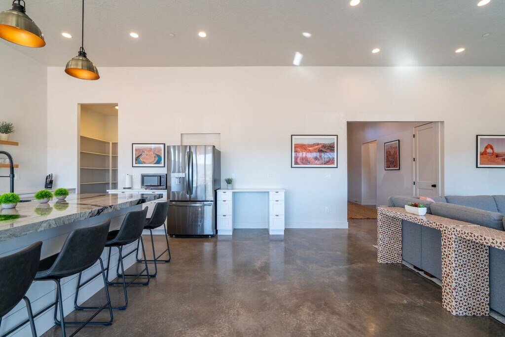 Walking into this home you are immediately met with a feeling of anticipation for the great getaway ahead. The bright home, fun colors, and one-of-a-kind bunkroom set you up with incredible feelings of home while experiencing a one-of-a-kind stay! From the rooftop balcony, private pool, rooftop spa and firepit, themed rooms, and a bunkroom for all your adventures, there is something for everyone to enjoy in this home away from home!