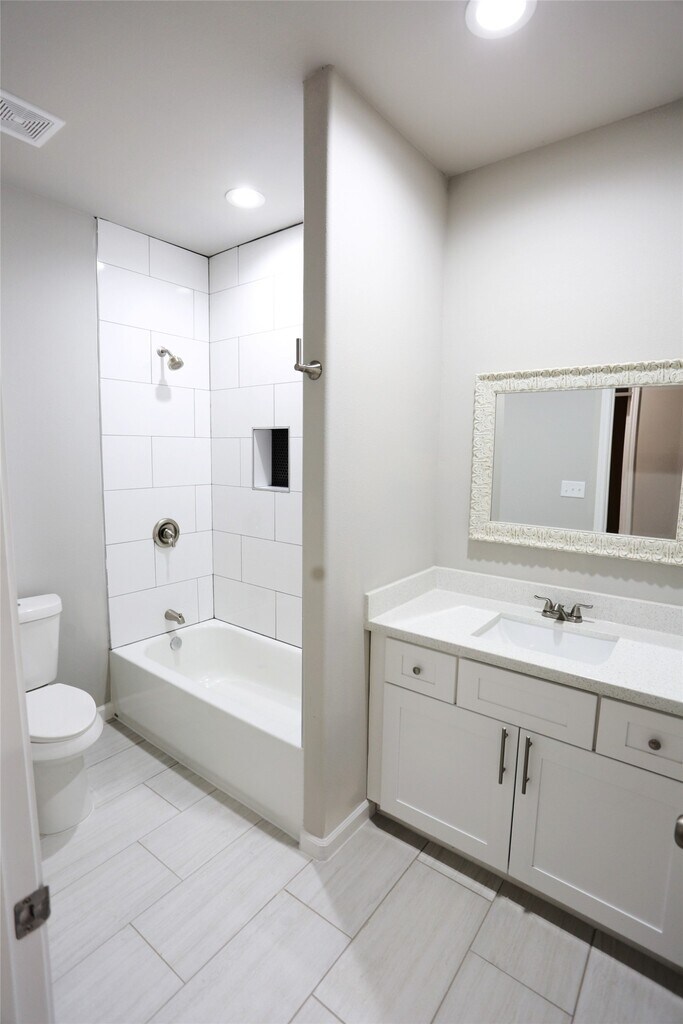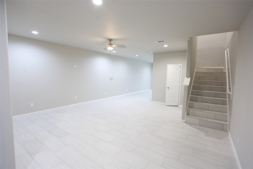 Beautifully finished 3-bedroom,2.5-bath unit in a duplex,with huge fenced in backyard,just minutes from downtown Conroe. Features porcelain tile throughout—upstairs and down—and high-end finishes for a clean,modern look. Downstairs you find the spacious living area,sleek half bath,and a chef’s dream kitchen with quartz countertops,stainless steel appliances,and a large eat-in peninsula. Upstairs,the primary suite offers a massive walk-in closet,double vanity with quartz counters,and a stand-up shower. Two additional bedrooms share a full bath with a tub. Washer/Dryer connections and Flex area upstairs,perfect for home office,game room or 2nd living area. Enjoy a large,fully fenced backyard—perfect for pets or outdoor living. Includes a one-car garage and driveway for second vehicle. Pet-friendly and ideally located near shopping,dining,and downtown Conroe attractions,this home combines comfort,style,and convenience. MLS# 76455213