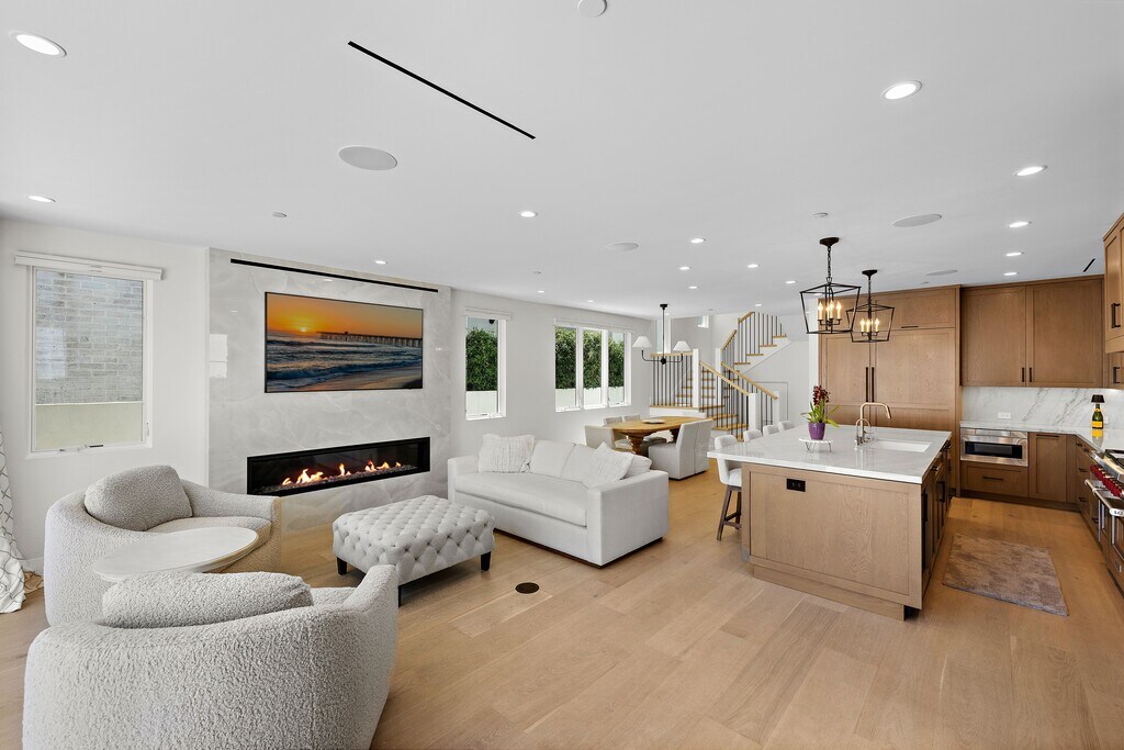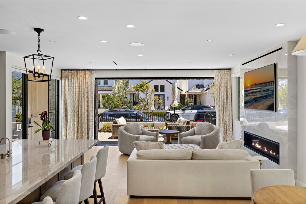 509 Carnation Avenue | Corona del Mar Village. Available Furnished with Butera Designer Interiors. Just one block from Begonia Park and the sparkling Pacific, 509 Carnation is a custom new-build that perfectly marries coastal elegance with modern livability—situated on the coveted ocean side of Pacific Coast Highway. From the moment you step inside, sunlight pours through oversized windows and pocketing sliding doors, casting a warm glow across rich hardwood floors. The open-concept layout was designed for connection—whether it’s lively dinner parties that spill onto the patio or peaceful mornings in the private courtyard. Curated by Butera Designer Interiors, the home’s furnishings embody refined coastal charm. The chef’s kitchen is a dream for culinary enthusiasts, complete with Sub-Zero, Wolf, and Miele appliances, quartz countertops, and Visual Comfort lighting for a soft, sophisticated glow. This 3-bedroom, 3.5-bath retreat features spa-inspired bathrooms, two fireplaces, and a luxurious primary suite with a walk-in closet that blends function and indulgence. Two built-in central vacuum systems add a touch of everyday ease. Outdoor living takes center stage: Front patio designed for morning coffee or evening cocktails under the coastal sky, Upper-level deck with a peek-a-boo ocean view, perfect for sunset toasts and a Private courtyard. Every detail has been considered—from the seamless indoor-outdoor flow to the hand-selected finishes—creating a home that’s as effortless as it is elegant. Live the village lifestyle: stroll to the beach, grab your morning latte from a local café, or explore charming boutiques just steps away. Now available for lease or sale. 509 Carnation isn’t just a home—it’s your coastal sanctuary.