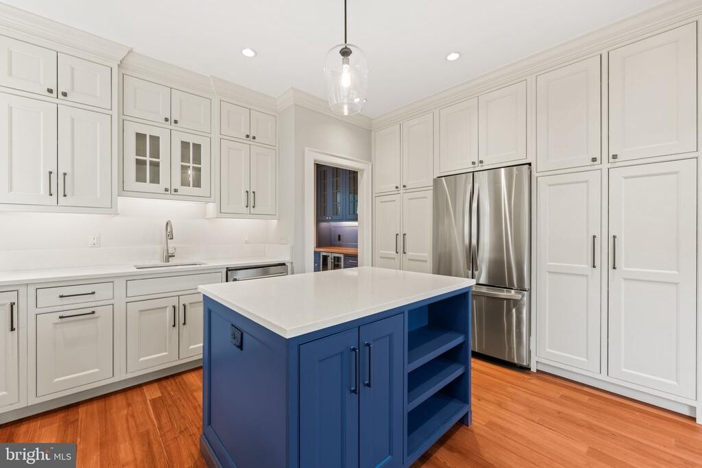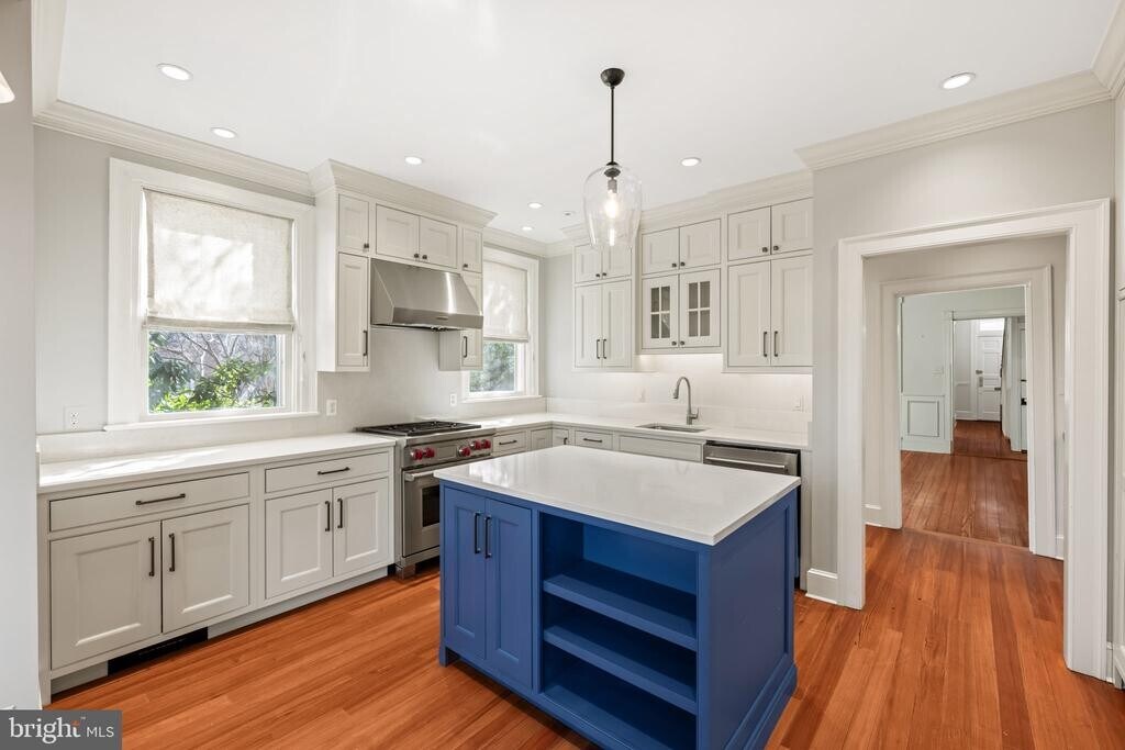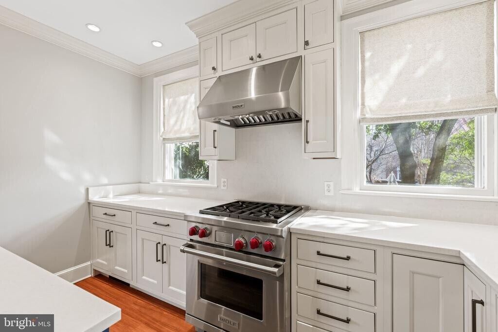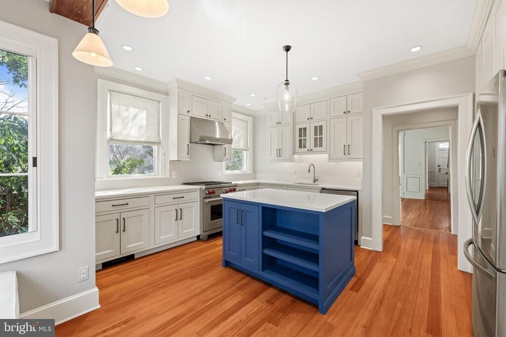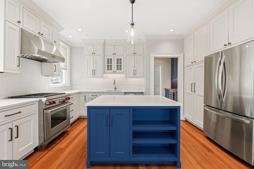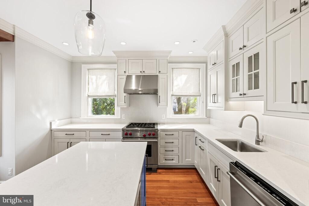 Located in the heart of Old Town Alexandria, this beautifully renovated residence offers a thoughtful layout and exquisite details throughout. The generously sized living room, anchored by a wood-burning fireplace, is filled with natural light from multiple windows. The dining room is equally impressive, featuring high ceilings, original hardwood floors, and its own wood-burning fireplace. The spectacular kitchen is masterfully designed with inset cabinetry offering smart, organized storage, a Wolf gas range, and a charming breakfast nook with space for a dining table. Upstairs, three spacious bedrooms provide comfort and flexibility. The primary suite features a beautiful fireplace, an en suite bath, and custom built-in closets with a window seat. The middle bedroom—ideal as a den or home office—offers a wall of bookcases and the home’s fourth wood-burning fireplace. The rear bedroom is serene and overlooks the private back garden. Custom designer shades and blinds are installed throughout the home. A rare opportunity to lease a pristine, move-in-ready home in one of Old Town’s most desirable locations. Pets will be considered on a case-by-case basis.