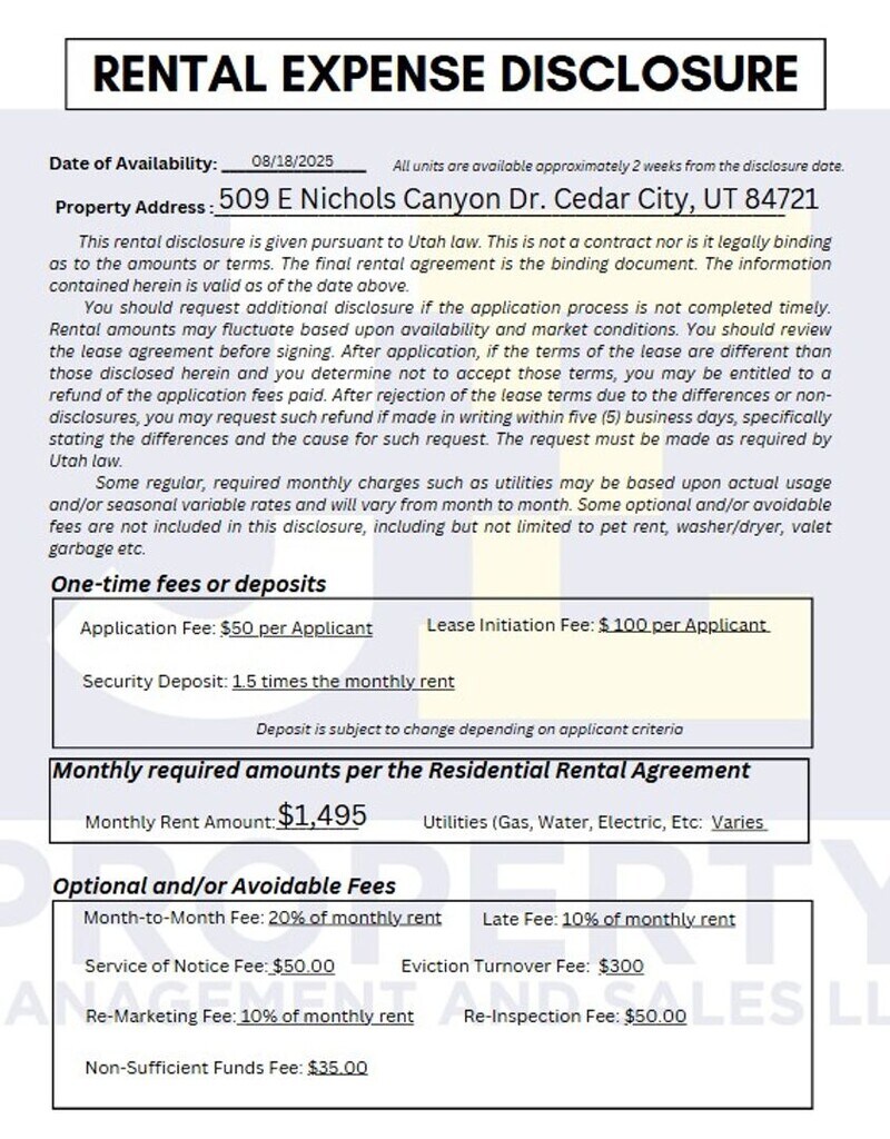 Welcome to this inviting 3-bedroom, 1-bathroom home located in Cedar City. The layout offers a comfortable, easy-to-maintain living space—perfect for anyone who values simplicity and convenience. The kitchen comes equipped with essential appliances, including a dishwasher and stove, making daily cooking effortless. Gas heating keeps the home warm and cozy during the colder months. While there is no garage, the property provides generous parking with space for up to six vehicles, offering plenty of room for residents and guests. This home delivers comfort, convenience, and accessibility.