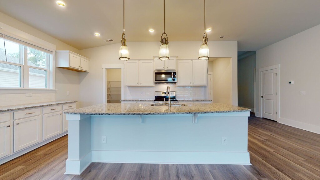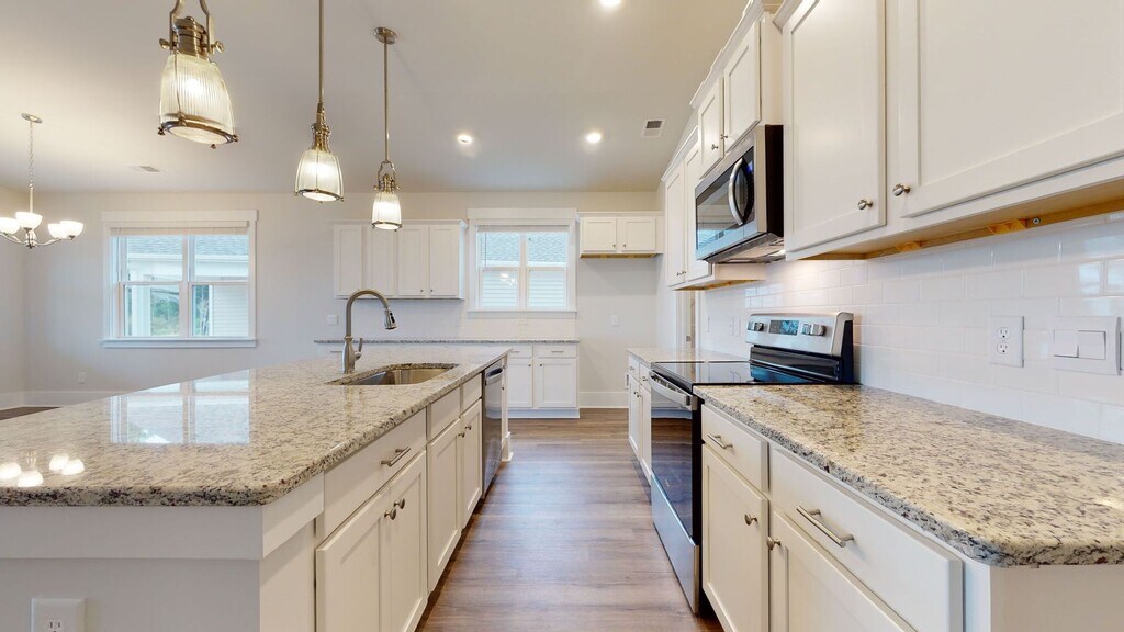 Do not miss this beautiful home in Surf City's newest community, Waterside! This home boasts 11-foot high ceilings, and a large gourmet kitchen with 36'' staggered cabinets with crown molding, granite, tile backsplash, walk-in pantry, and stainless-steel appliances. Luxury Vinyl Plank flooring is included throughout. The owner's suite features a separate soaker tub and shower shower and dual vanity. Spend the end of each day in your fenced in yard or on the oversized covered porch that has plenty of room for relaxing! Call us today for more information!!