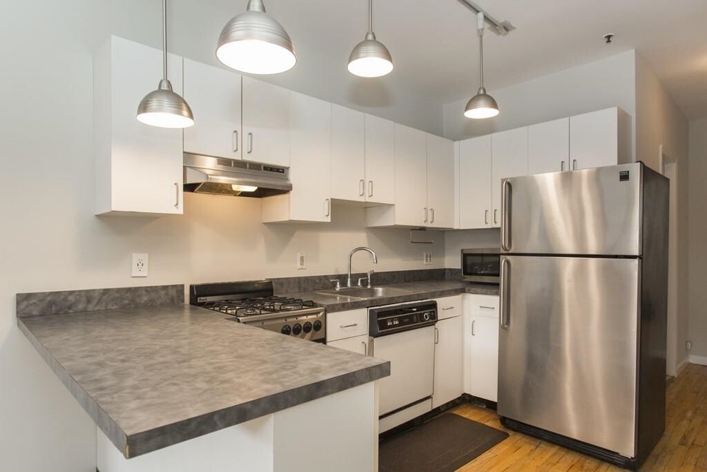 Packed with charm, this delightful 1 bedroom, 1 bathroom, Hoboken oasis boasts stainless steel appliances, a private outdoor balcony, and an exceptional location leaving you nearby the Hoboken PATH station, the 2nd Street Light Rail station, in addition to several trendy shops, bars, and restaurants. As you enter, you’re greeted by an expansive open-concept floor plan, featuring lustrous hardwood floors throughout the gourmet kitchen and spacious living area. The kitchen comes outfitted with ample custom cabinetry, a full suite of kitchen appliances, including a dishwasher, and a stainless steel refrigerator, microwave, gas range + hood. Breakfast bar seating is also available to you, ideal for casual dining, and effortless entertaining. Make your way towards the spacious living area, featuring a decorative fireplace mantel, exposed brick accents, and illuminated by a massive skylight, and two large windows. Your private bedroom oasis reveals a large built-in closet, in addition to direct access to your private balcony boasting gorgeous views of Manhattan’s financial district. Nearby, a chic tile bath completes the remainder of this charming home. Magnificently located in the highly-coveted neighborhood of Hoboken, you’ll enjoy convenient access to several major transportation options, taking you around the neighborhood, and into Manhattan in no time. For a night out on the town, explore the energy of downtown Hoboken, featuring delectable waterfront eateries like Del Frisco’s Grille, The Ainsworth, and Halifax.