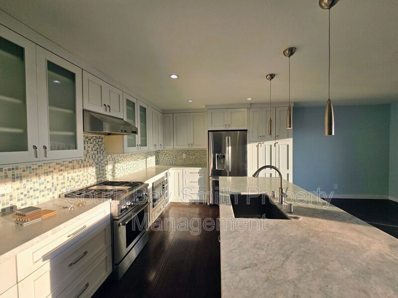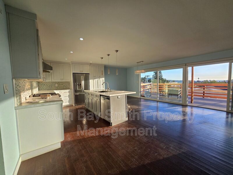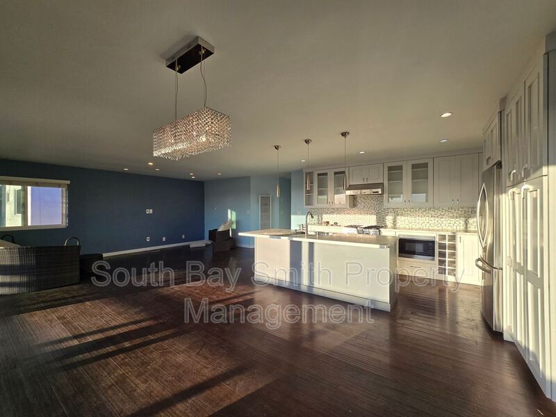 509 N. Helberta Ave., Redondo Beach, CA 90277 • Beautifully updated 3 bed 1 ¾ bath, upper unit • Bright, open floor plan kitchen, dining, living space & balcony with big west-facing sunset & ocean view • Custom lighting throughout • Gourmet kitchen w/ stainless appliances • Hardwood floors, carpet in bedrooms (subject to change!) • Shared laundry room downstairs. • Near award winning Beryl Elementary, Parras Middle School & RUHS! • Oversized 1-car garage + 2 cars on driveway apron • Pets with submission • One year lease • Owner pays water, gas & trash Amenities: Dishwasher, ocean view, Laundry on site, Refrigerator Included, Balcony