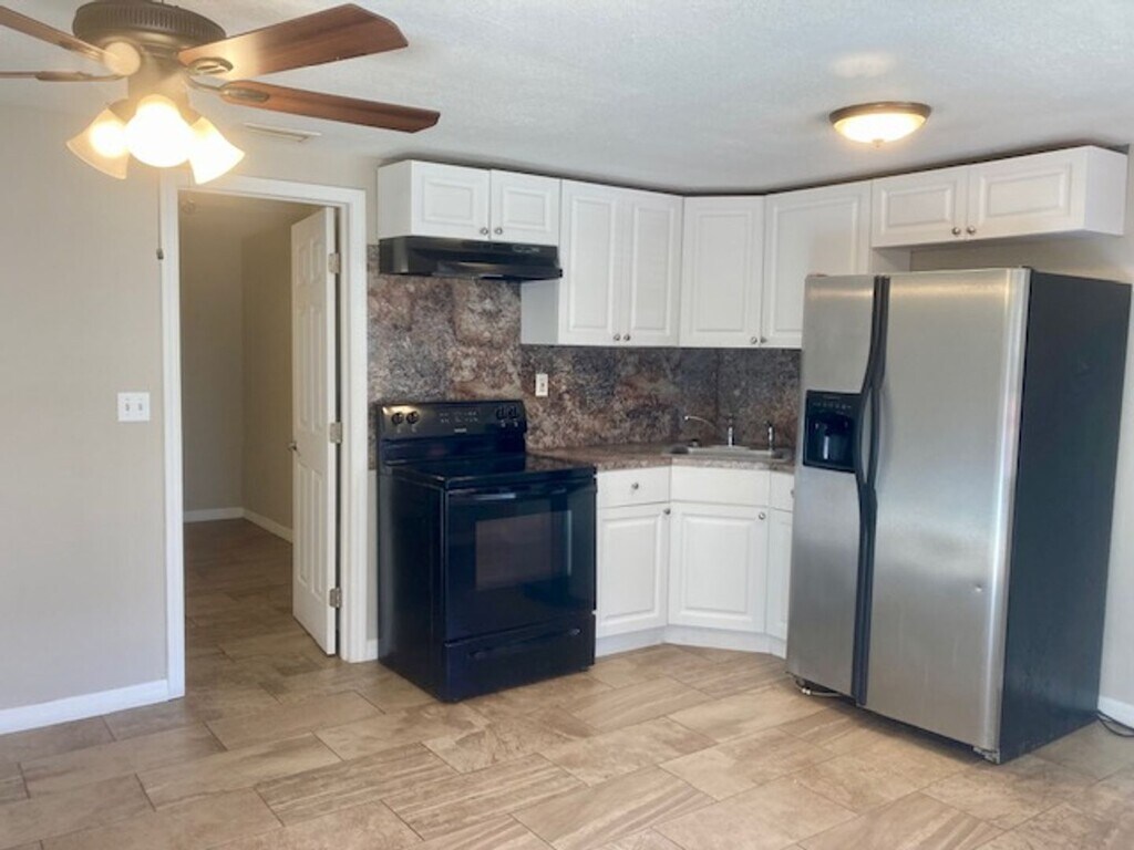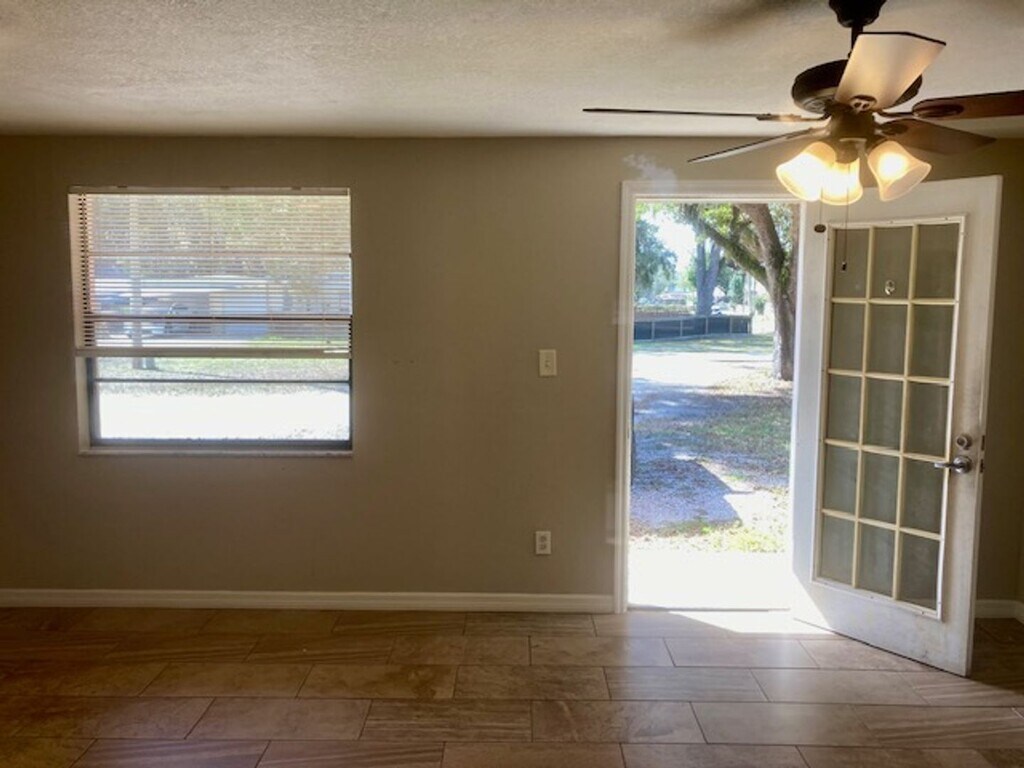 Nice rental unit (duplex) with tile floors, fresh paint, ceiling fans, and a full bath. Some clothing bins by the bathroom for storage. Owner is currently providing electric in the rent. This unit does not have a washer or dryer. Please call us to schedule your showing at .